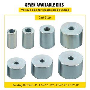 – 7 Superior Steel Dies: We provide 7 interchangeable tube bender dies, ranging from 1″ to 3″. All these are made of reinforced steel for durable use. The bending heads can meet different usage needs, making your work more convenient.