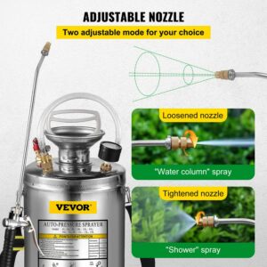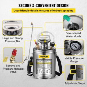 VEVORbrand 1 Gallon Pump Sprayer Stainless Steel, Lawn and Garden Hand Pump Sprayer with Pressure Gauge&Safety Valve, Adjustable Nozzle for Gardening and Sanitizing