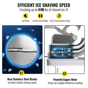 VEVORbrand 110V Commercial Ice Crusher 440LBS/H, ETL Approved 300W Electric Snow Cone Machine with Dual Blades, Stainless Steel Shaved Ice Machine with Safety On/Off Switch