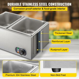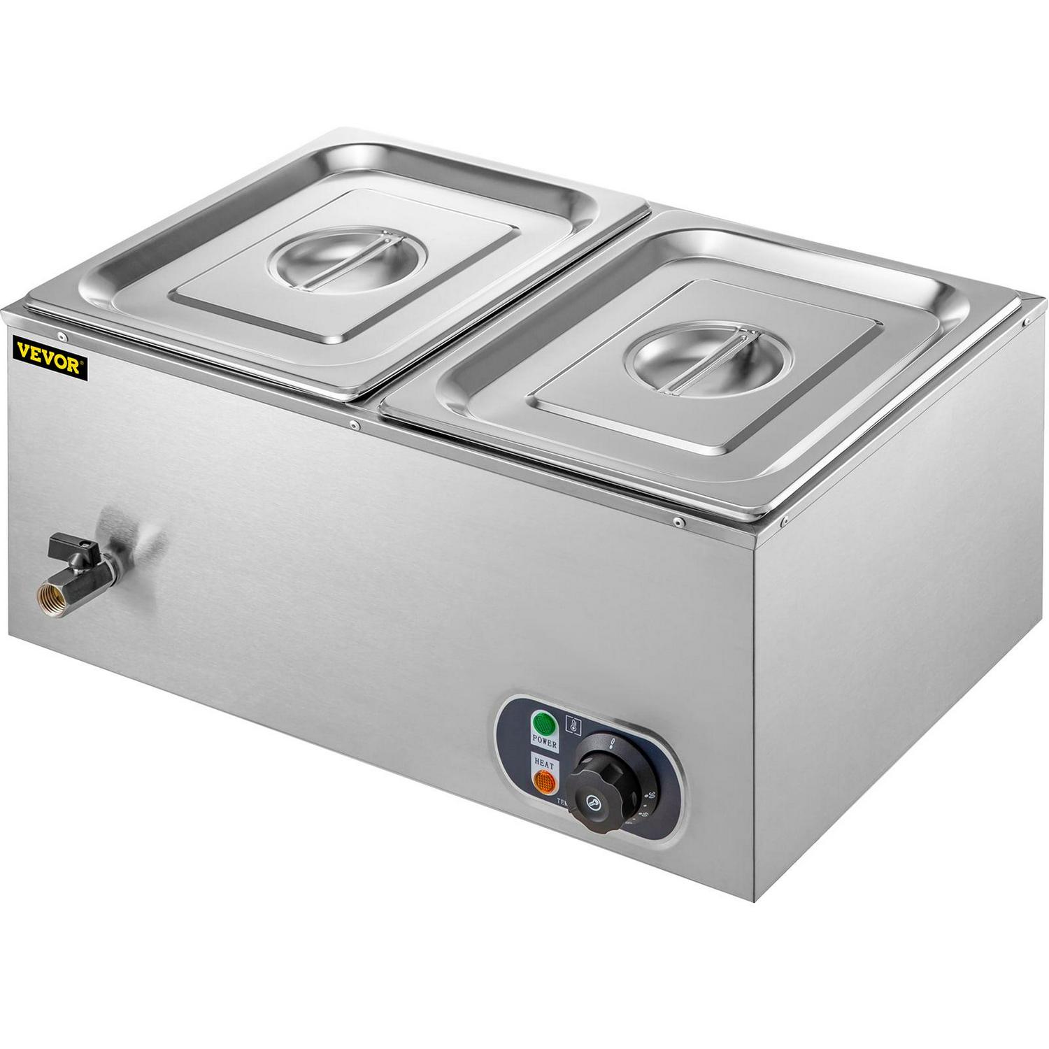 VEVORbrand 2-Pan Commercial Food Warmer, 1200W Electric Steam Table 15cm/6 in Deep, Professional Stainless Steel Buffet Bain Marie 22 Quart Capacity for Catering and Restaurants