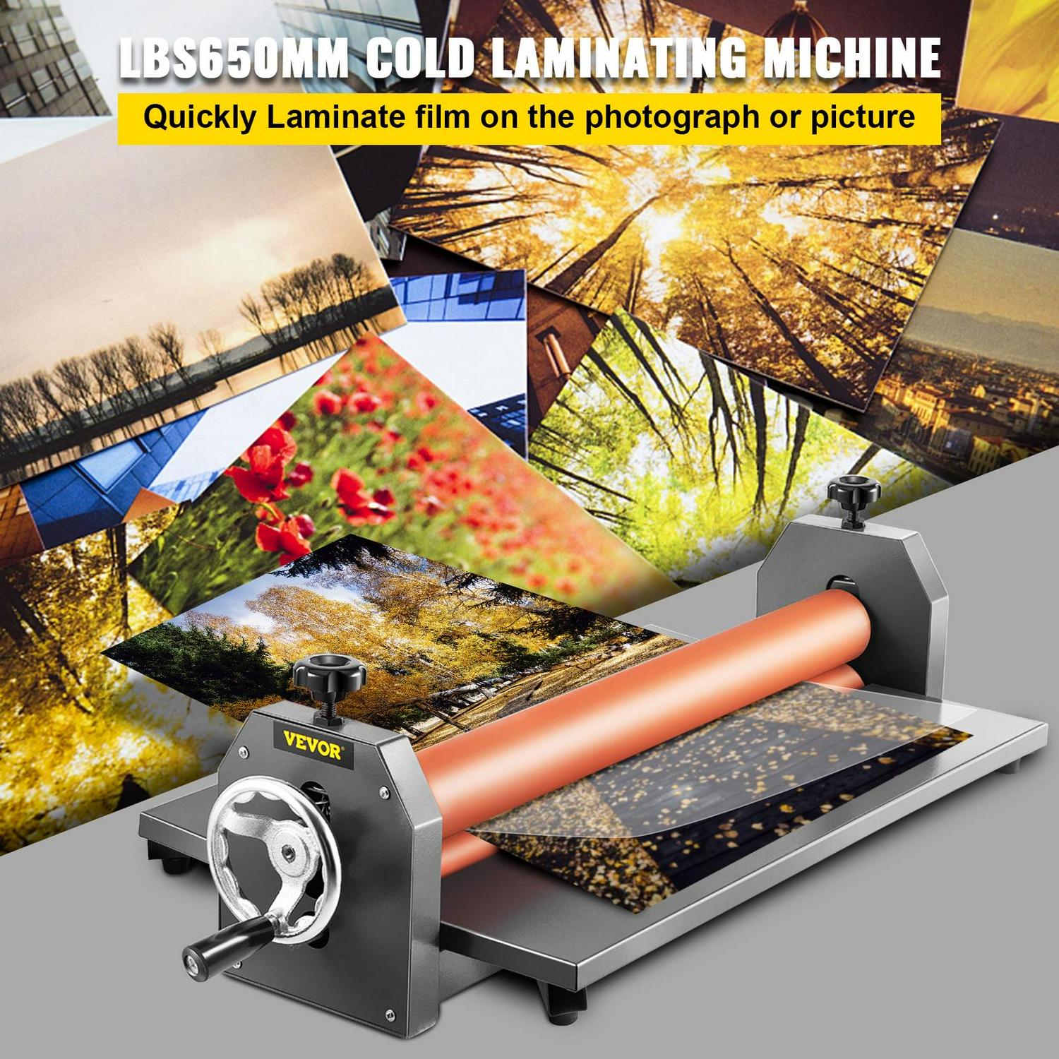 VEVORbrand 25 inch Manual Cold Roll Laminator 1.18 Thickness Foldable Roll Laminating Machine Vinyl Photo Film Mounting Laminator for Commercial Professional Uses (25 Max Film Width)