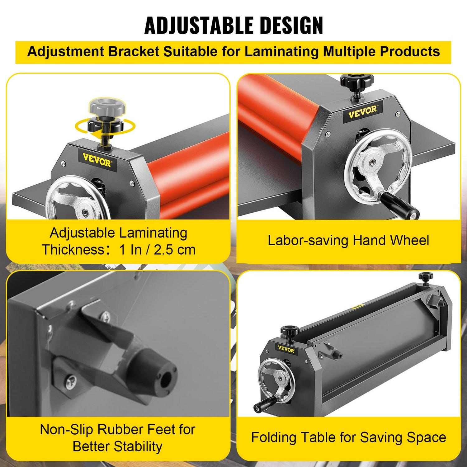 – ADJUSTABLE & FOLDING – Hand crank laminating machine adapts the adjustable roller position, suitable for various material thicknesses; the folding table is convenient for storage and easy to use.