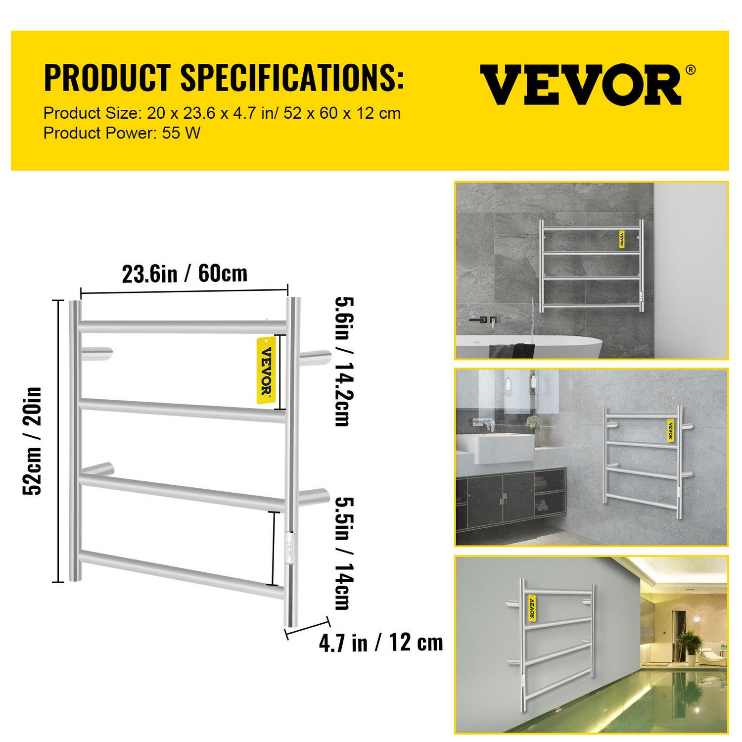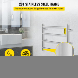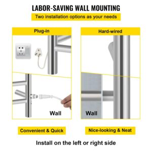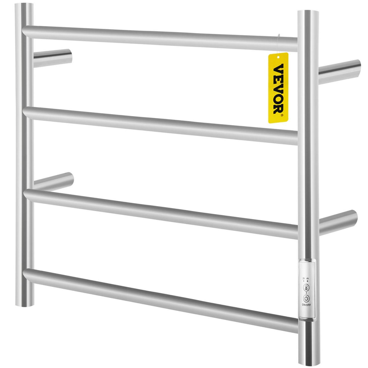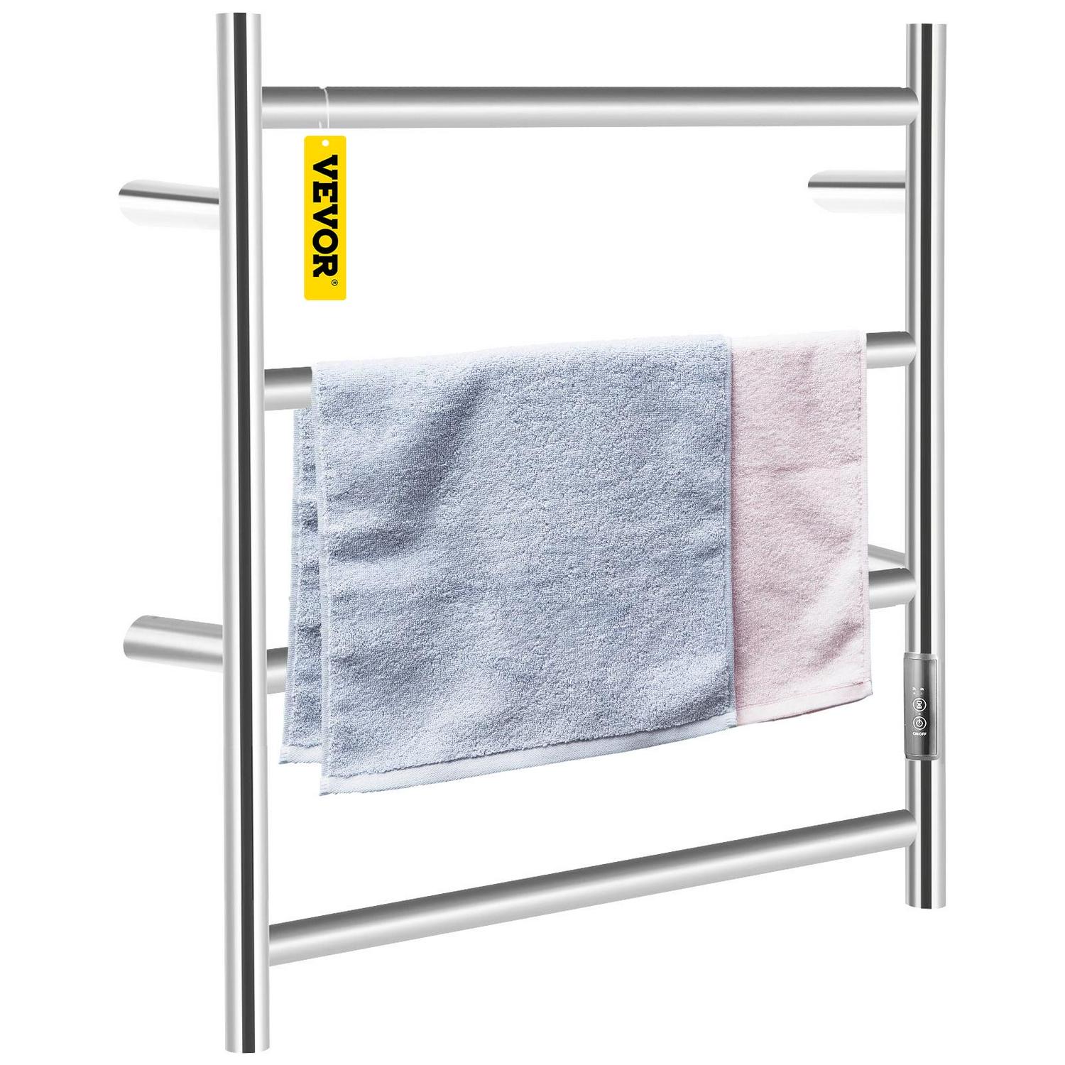 VEVORbrand 4 Bar Heated Towel Rack, Electric Towel Heater Warmer w/ Timer, Wall-Mounted Plug-in Bath Towel Warmer Polished Stainless Silver