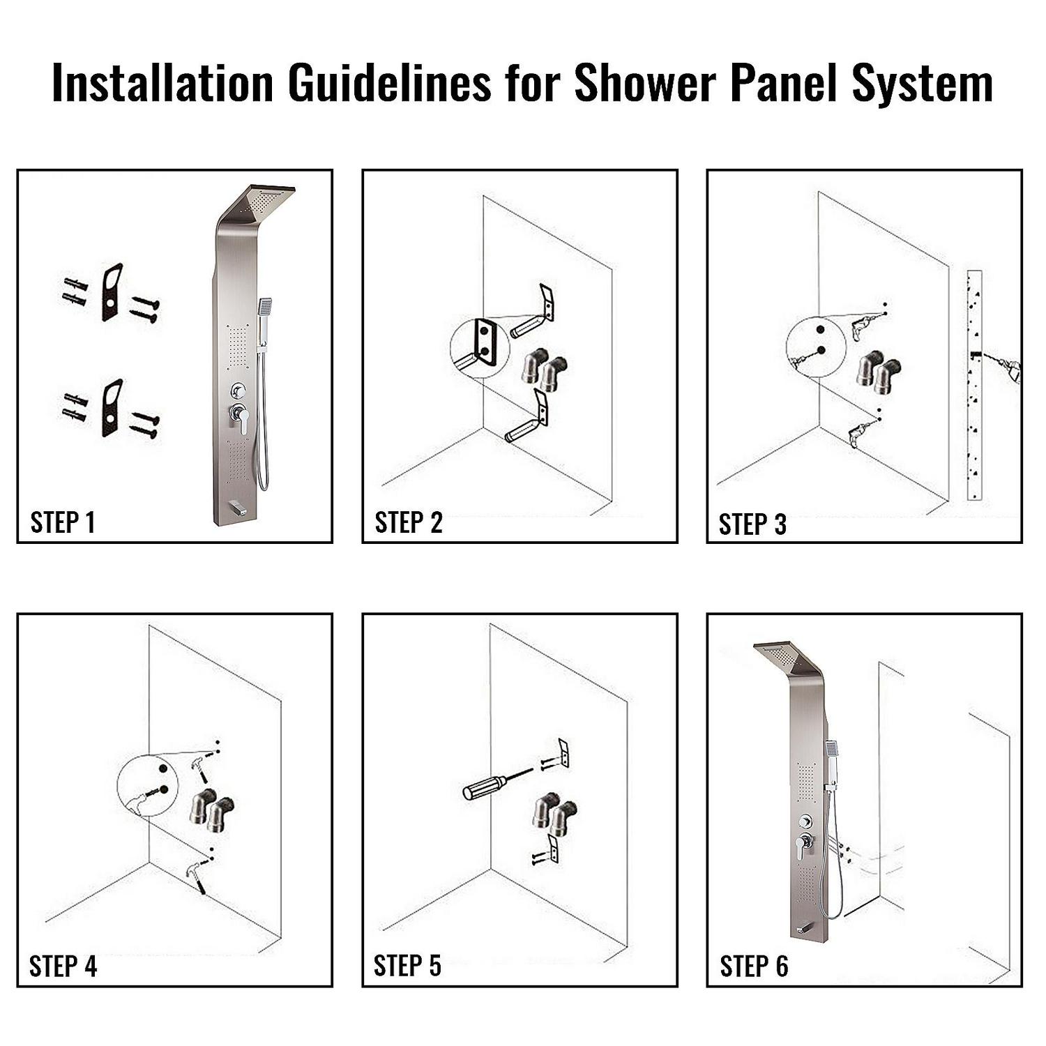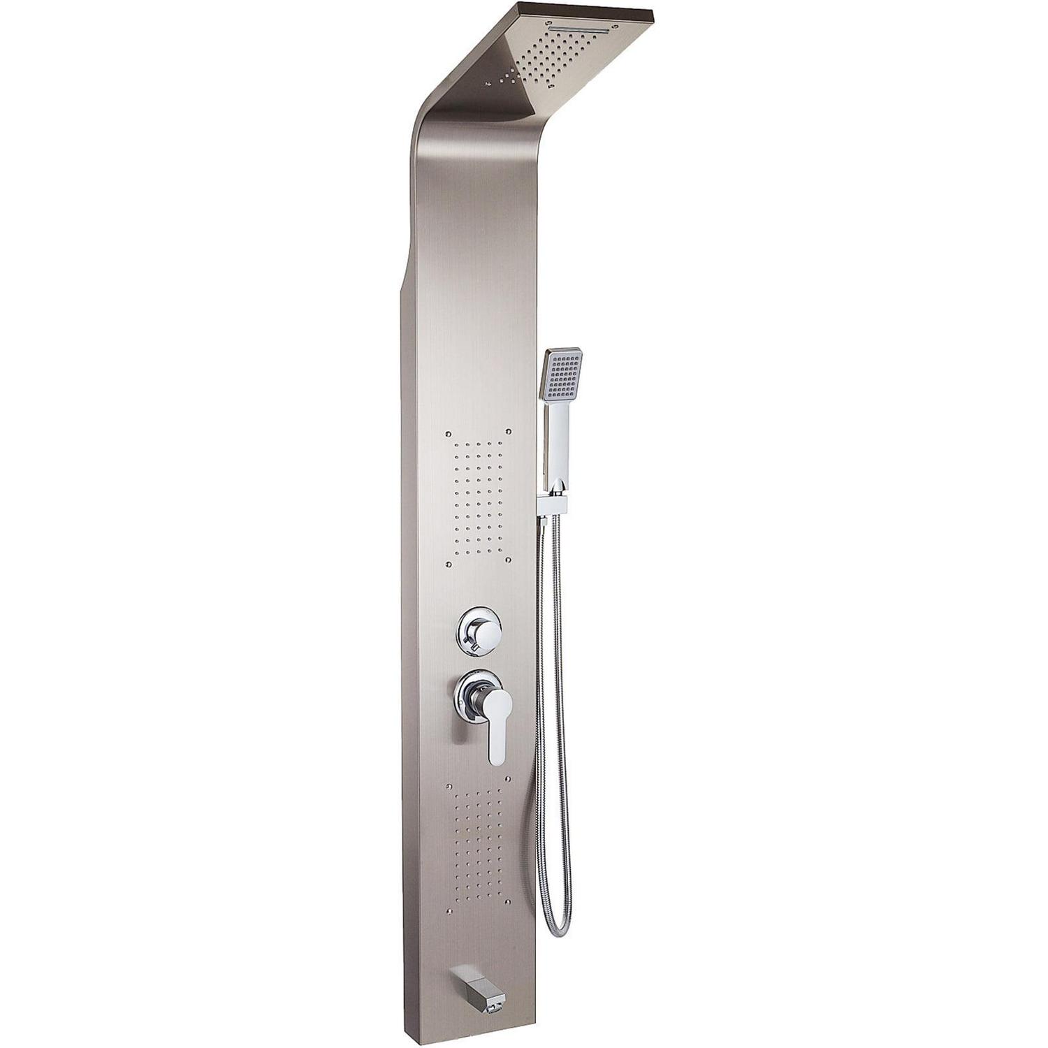 – STURDY STAINLESS STEEL FRAME – Color: Silver; The 304 stainless steel thickened panel, brass connectors, and explosion-proof hoses make this shower panel silver high-temperature resistant. Integral design make it leakage-proof and ensures superb quality. The elegant brushed surface is anti-rust, finger-proof, and easy to clean.