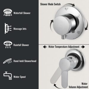– 5 IN 1 SHOWER SYSTEM – Come with five comfortable shower modes: waterfall, rainfall, two massage jet areas, hand-held shower head, and bottom water spout. Rubber nozzles spraying soft mist or strong water to massage your body is non-clogging and maintenance-free. The shower head is also fit for pet washing or room cleaning.