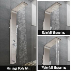 VEVORbrand 5 in 1 Panel Tower System Stainless Steel Multi-Function Rainfall Waterfall Massage Jets Tub Spout Hand Shower for Home, Hotel, Unitary, Brushed Silver