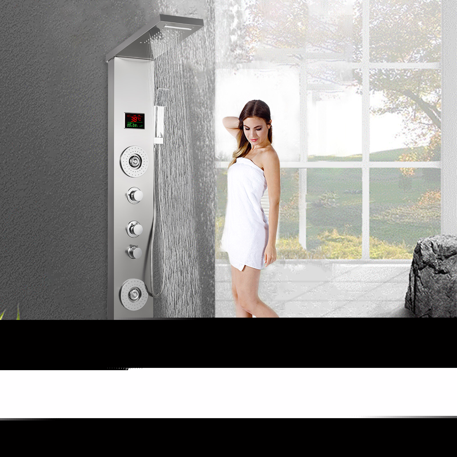 Perfect shower panel system for home & commercial showering. Made of 304 stainless steel, cool 6 functions: rainfall, waterfall, massage jets, SPA jets, tub spout, hand shower. This excellent shower panel will provide you a comfortable experience, drive away fatigue, relax your mind & body after showering. Luxury color, easy to match modern room decorations. Good product you cannot miss.