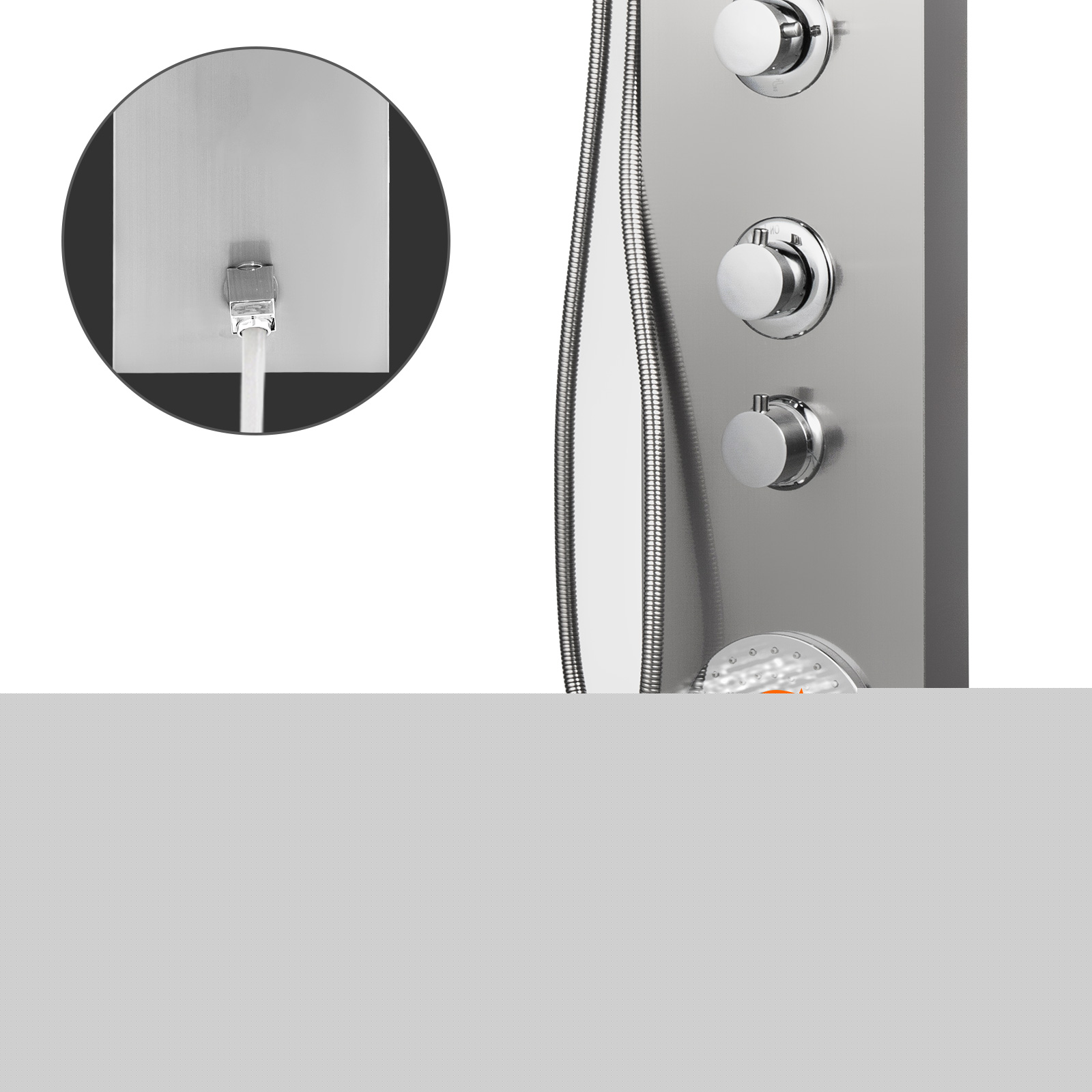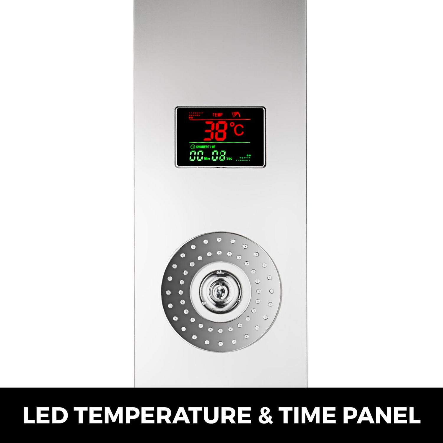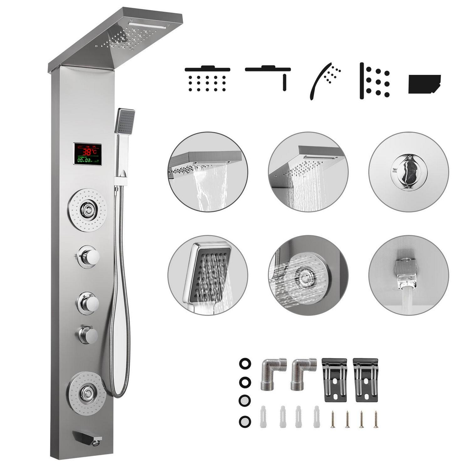 – PREMIUM QUALITY – Adopt 304 stainless steel and brass connectors, this shower system is high-temperature resistant, anti-rust and leakage-proof. With brushed craft, it is cool, luxury and sleek. Also with a LED screen to display real-time water temperature and shower time.