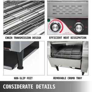 VEVORbrand Commercial Conveyor 1350W, Stainless Steel Conveyor Toaster 110Vfor Restaurant Breakfast