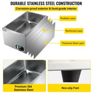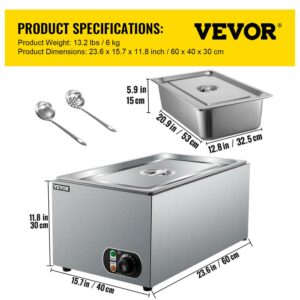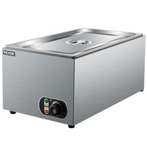 VEVORbrand Commercial Food Warmer, 27 qt Steam Table Warmer, Full Size Countertop Food Warmer, Stainless Steel Electric Steam Table, 1200W Buffet Food Warmer with Lid for Catering and Restaurant