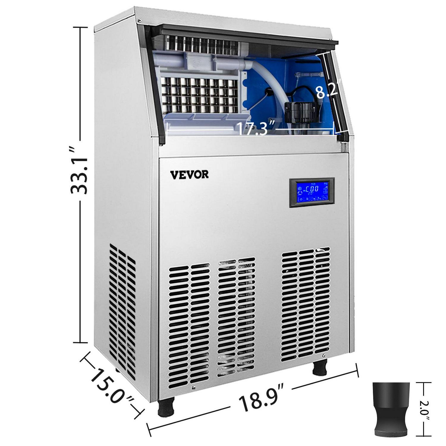 VEVORbrand Commercial Ice Maker 80 – 90 lbs/24H,Ice Machine with 33 lbs Storage Bin, Clear Cube, Advanced LCD Panel, Auto Operation, Blue Light, Fully Upgrade