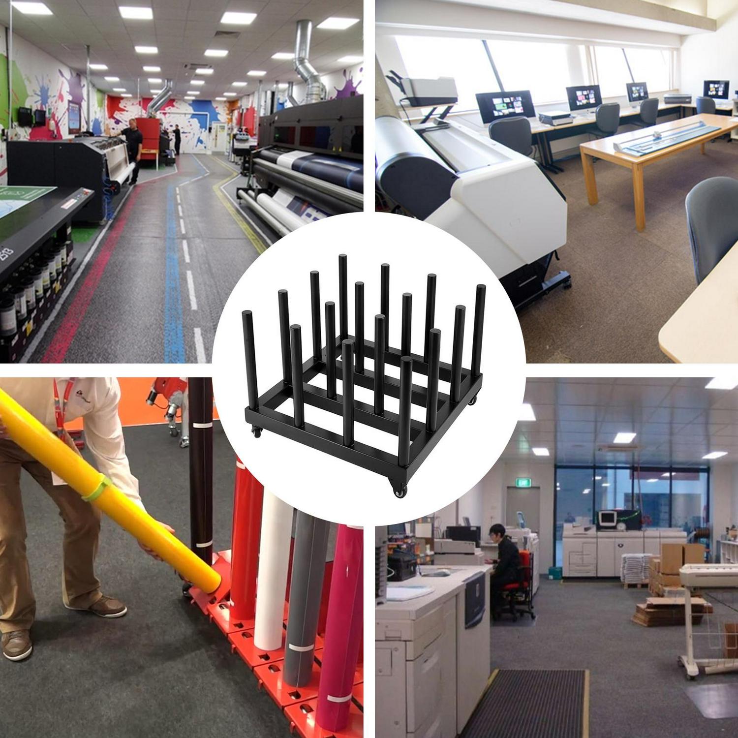 Our heavy-duty mobile media rack is made from powder-coated steel for robust and stout. It has a square base that holds 16 rolls of printing media with 2″ core, providing you with a perfect solution for your media storage needs.