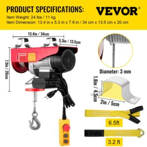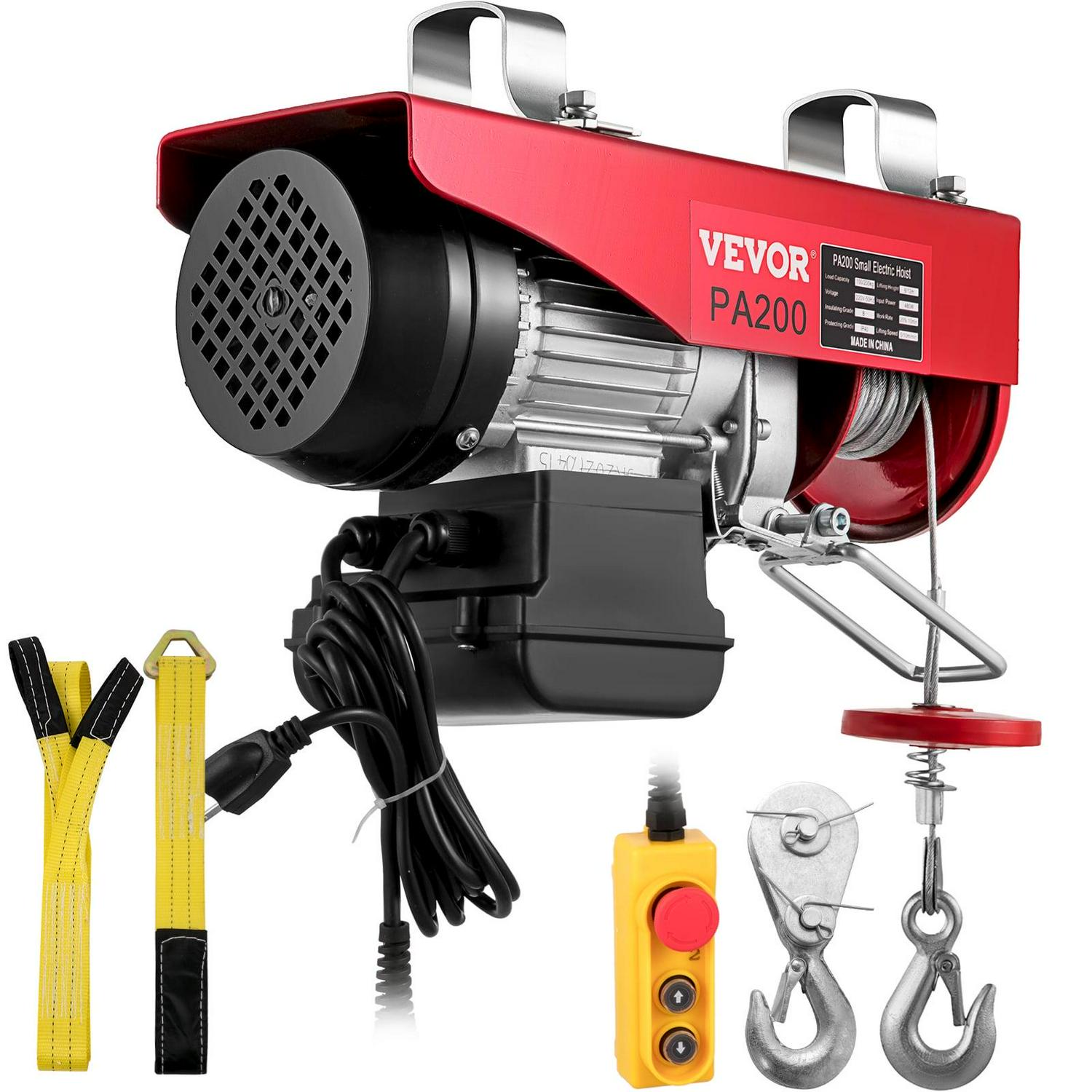 VEVORbrand Electric Hoist, 440lbs Electric Winch, Steel Electric Lift, 110v Electric Hoist with Remote Control and Single/Double Slings for Lifting in Factories, Warehouses and Construction Site