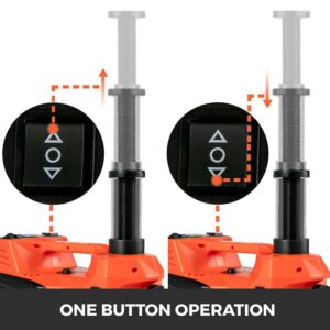 – Jack Capacity-5.0T/11023Lb- Working Capacity Can Reach Up To 5.0T(11023Lb)As A Jack. With 12V Vehicle Power Outlet, Low Pressure Rod, Set For The Sports Car. Equipped With Double Motor Driver Inside, It Works Independently And Effectively.