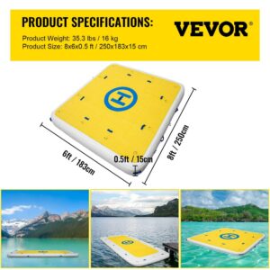 VEVORbrand Inflatable Dock Platform PVC Floating Dock 8 x 6 ft 3-4 Person with 2 Pumps