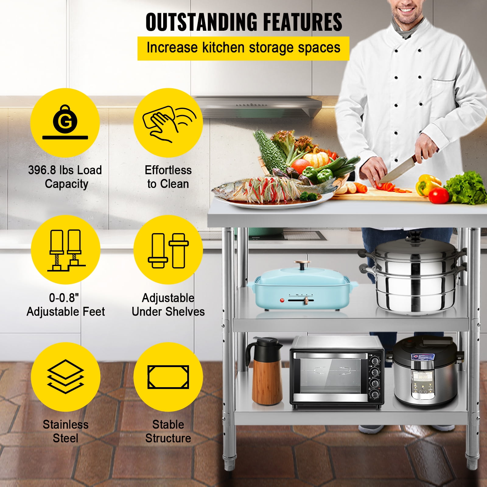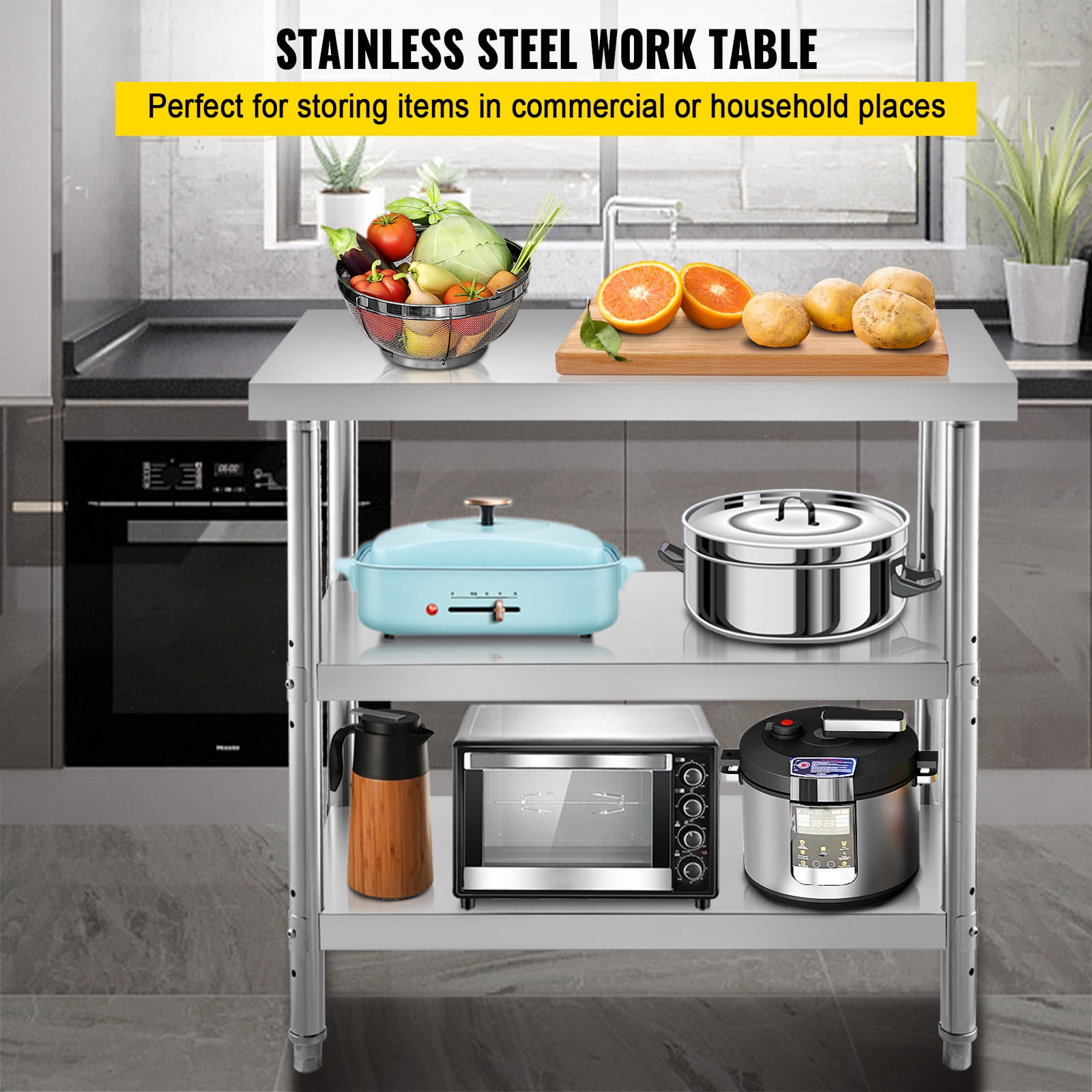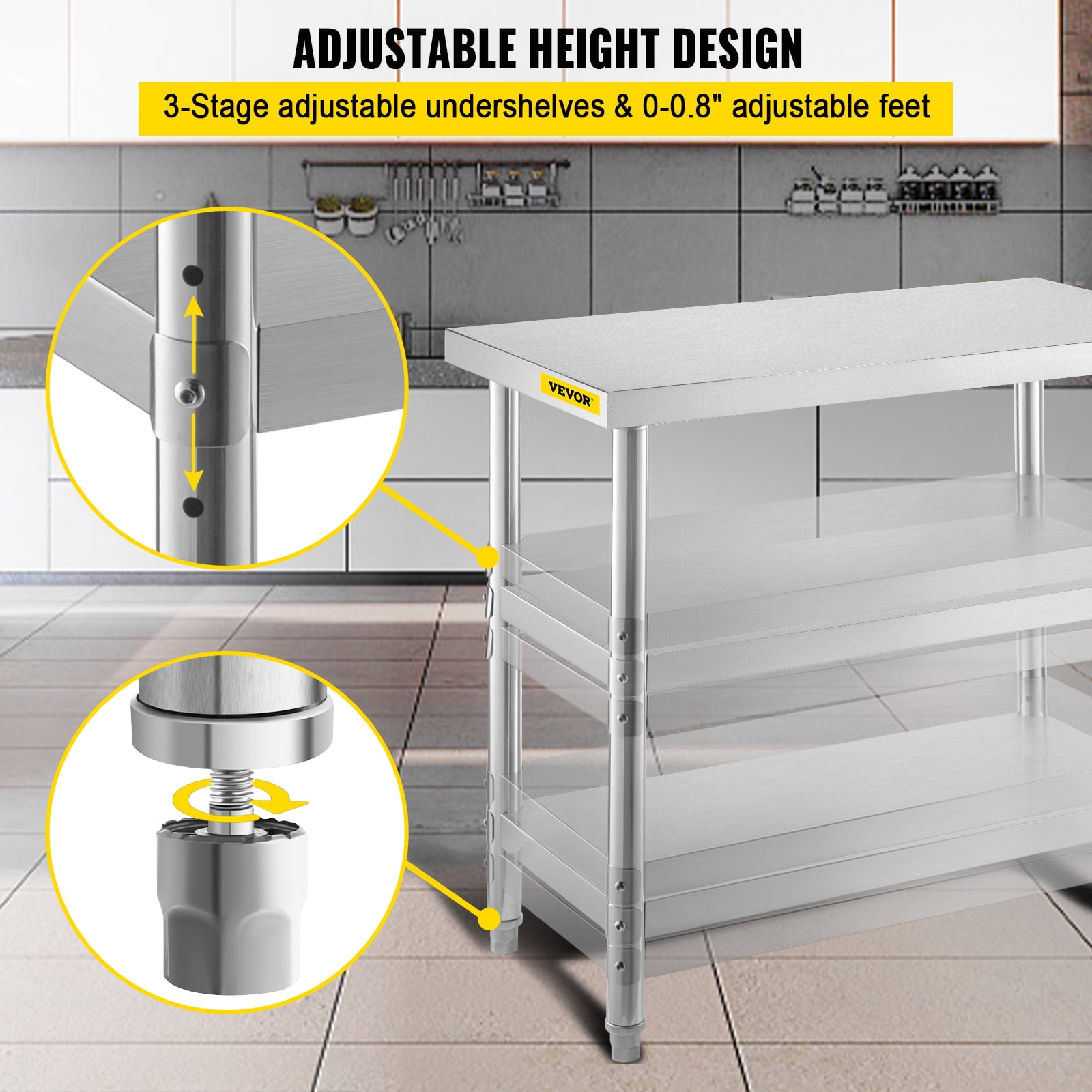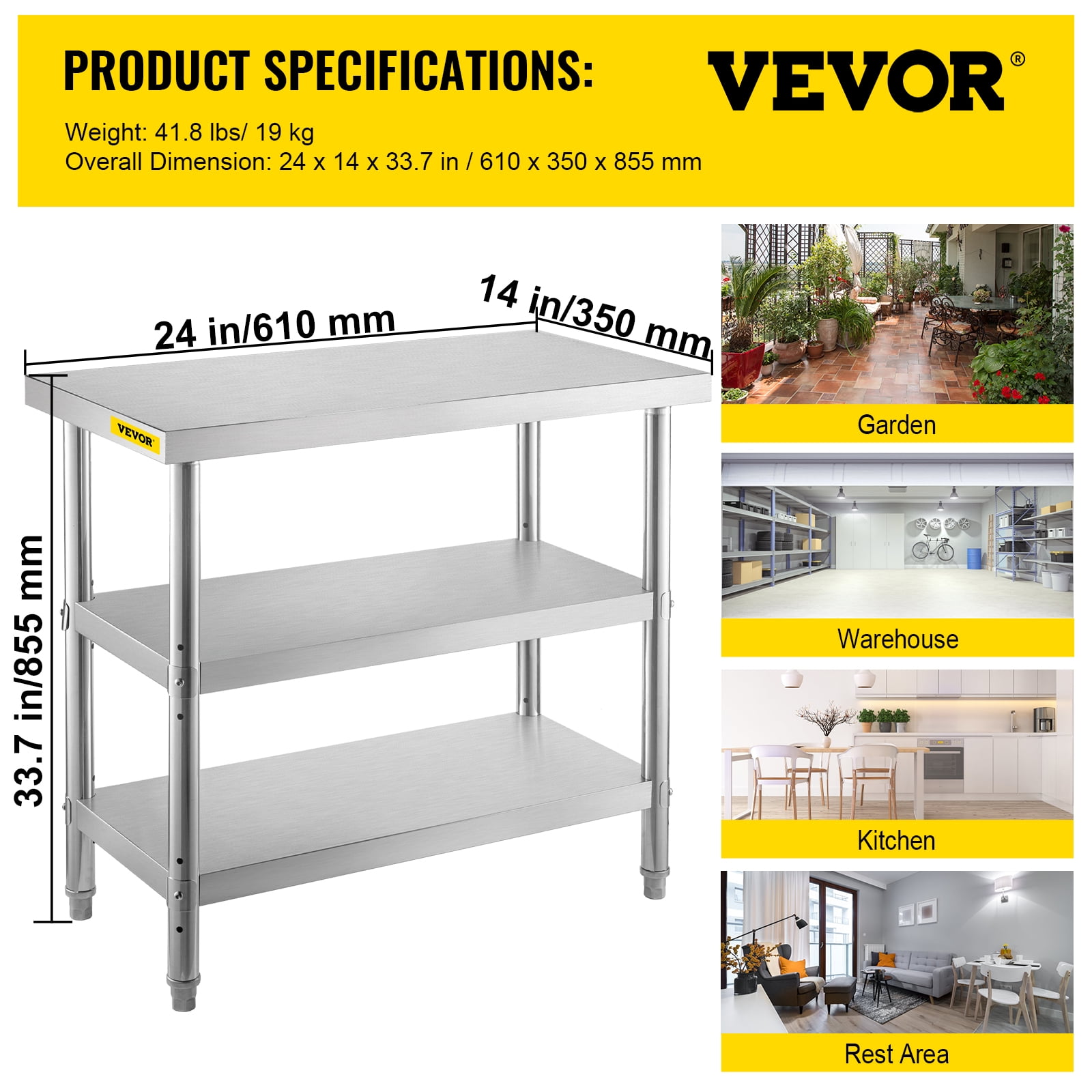 VEVOR 24″ x 14″ Adjustable Undershelf Stainless Steel General Purpose Table
