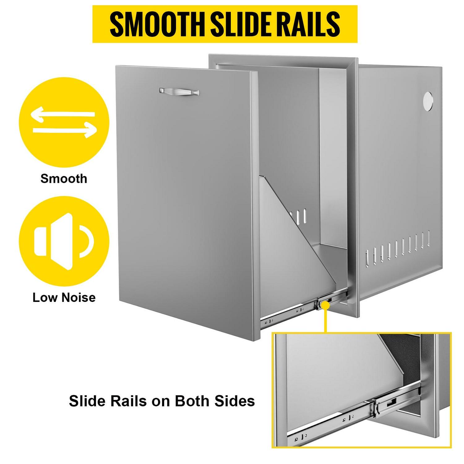 – Wide Application: This heavy-duty commercial grade propane tank/trash drawer adds practical propane tank/garbage storage in outdoor kitchen. Suitable for all weather.