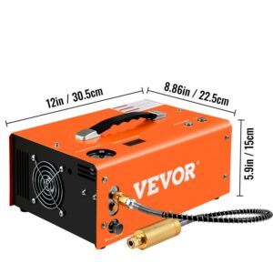 VEVORbrand PCP Air Compressor, 4500PSI Portable PCP Compressor, 12V DC 110V/220V AC PCP Airgun Compressor Auto-stop, w/ Built-in Adapter, Fan Cooling, for Paintball, Air Rifle, Mini Diving Bottle