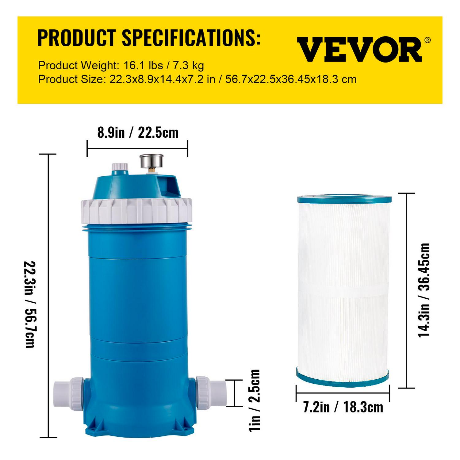VEVORbrand Pool Cartridge Filter In/Above Ground Swimming Pool Filter 50Sq. ft Filter, 2 Unions Included
