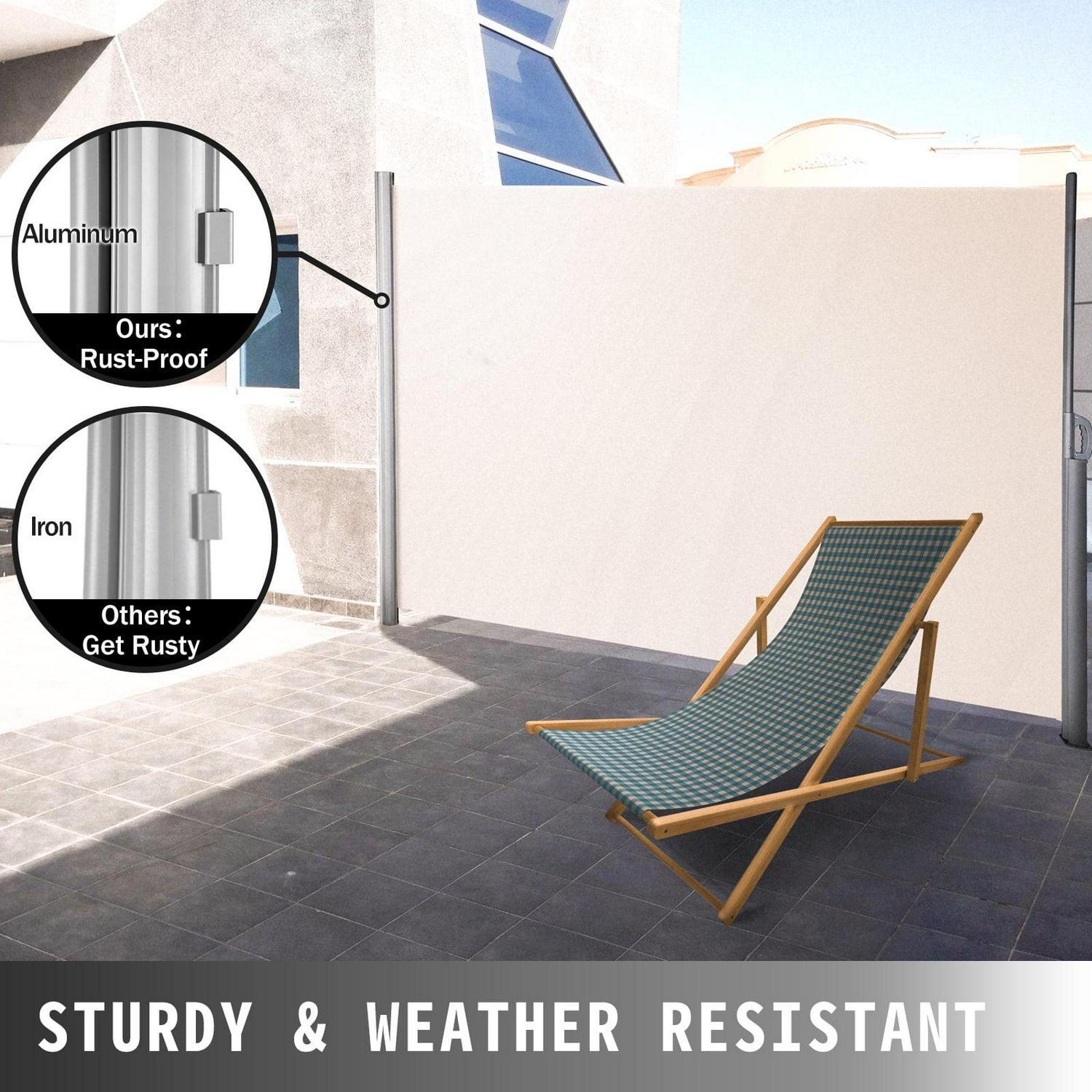 This retractable patio screen featuring a double-sided corner privacy wall with sun UV protection, giving you plenty of privacy.