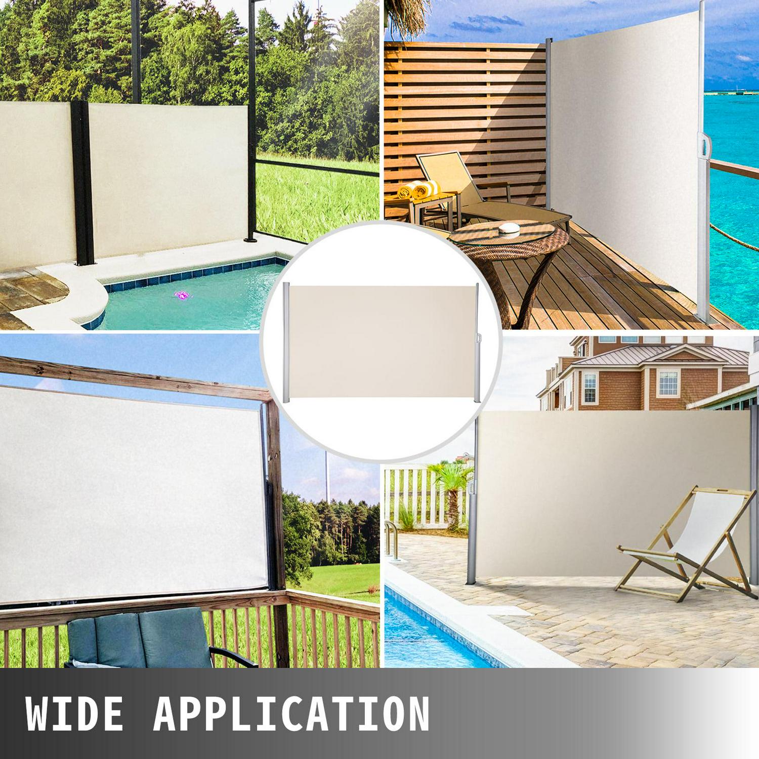 VEVORbrand Retractable Side Awning 118 x 71 , Retractable Patio Screen Waterproof, Retractable Room Divider Creamy-White for Privacy, Garden, Outdoor, Patio and Terrace,Aluminum Aloy