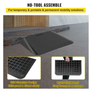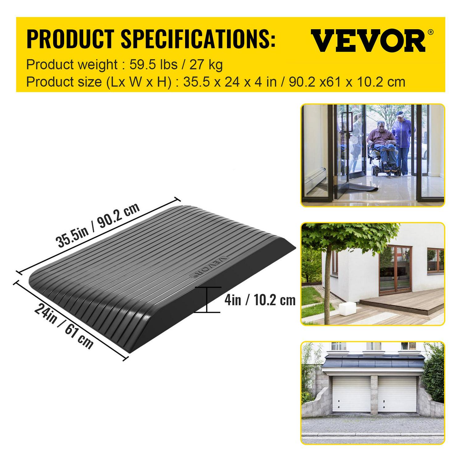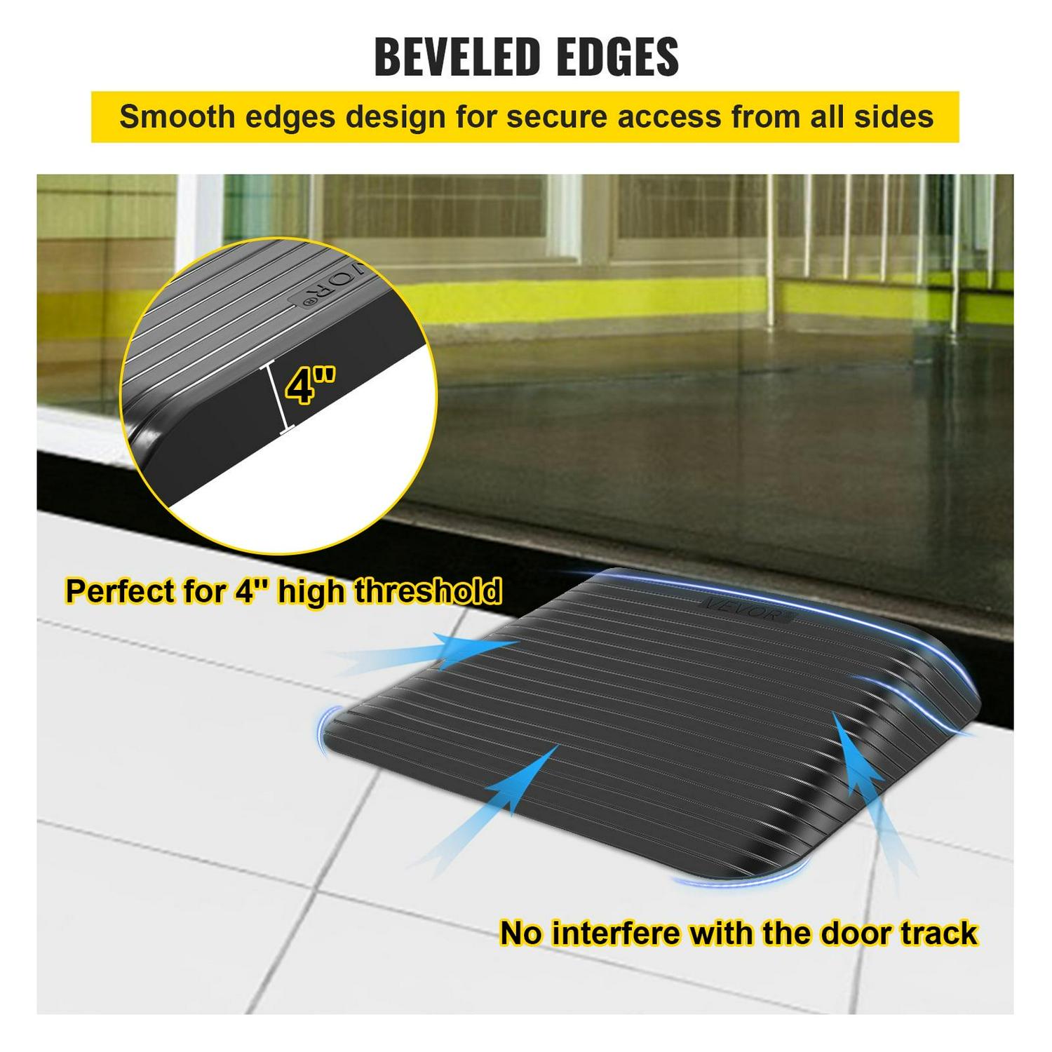 VEVORbrand Rubber Threshold Ramp, 4 Rise Threshold Ramp Doorway, Recycled Rubber Power Ramp Rated 2200 Lbs Load Capacity, Non-Slip Surface Rubber Solid Threshold Ramp for Wheelchair and Scooter