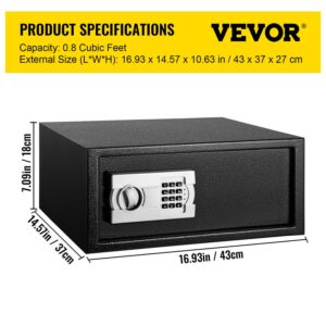 VEVORbrand Security Safe Box 0.8 Cubic Feet, Safe Deposit Box with LCD Screen and Digital Lock, Digital Safe Box, with Two Keys,Carbon Steel Construction Great for Home, Hotel and Office