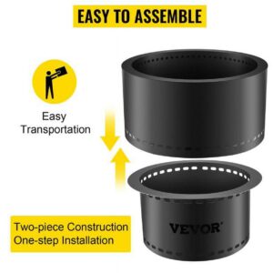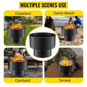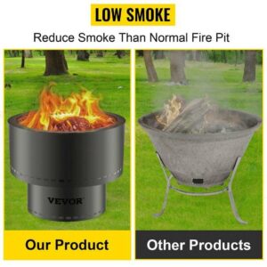 VEVORbrand Smokeless Fire Pit, Carbon Steel Stove Bonfire, Large 13.5 inch Diameter Wood Burning Fire Pit, Portable Smokeless Fire Bowl for Picnic Camping Backyard Black