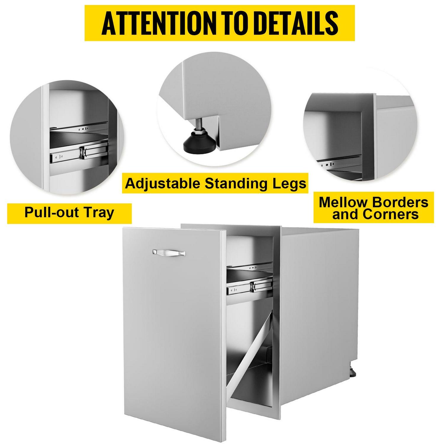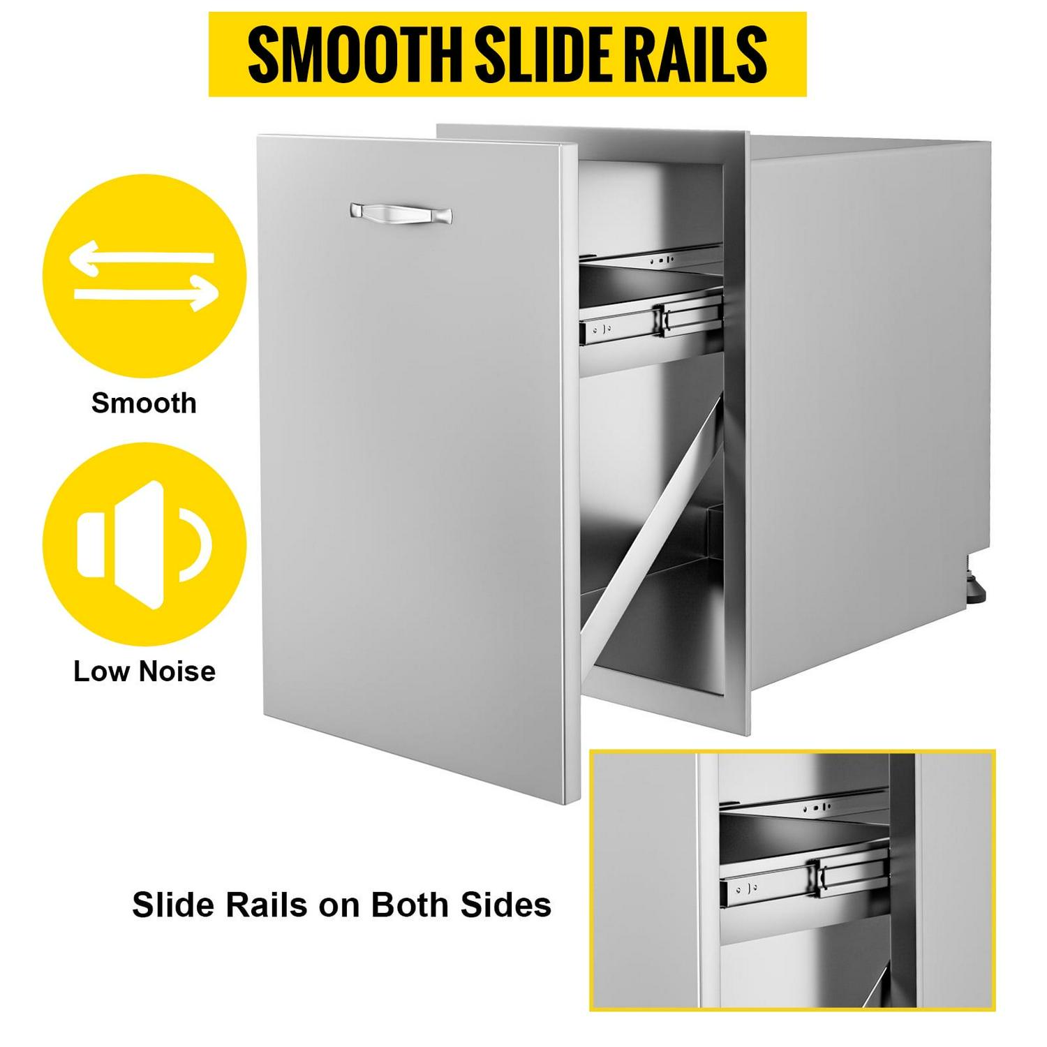 VEVORbrand Stainless Steel Pull Out Trash Drawer 17.7×22.8 Inch Raised Style Trash Bin with Pull-Out Tray Stainless Steel Trash Drawer with Handle for Outdoor Kitchen BBQ Island