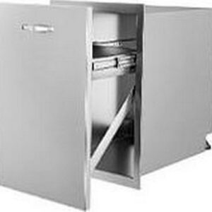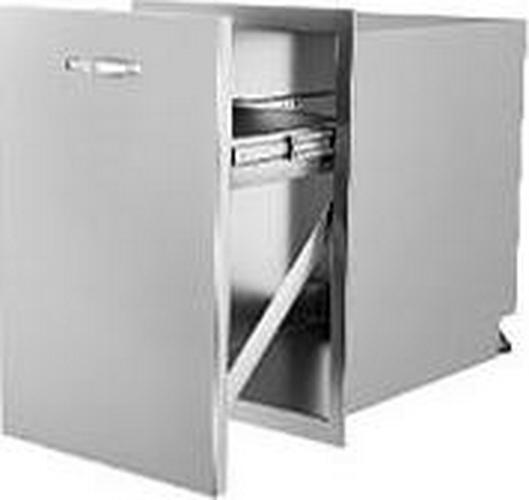 This 100% stainless steel constructed built-in trash drawer is waterproof, rustproof and anti-deformation. With internal hollow design, able to accommodate a single trash bin. The sliding rails facilitate the door s roll-in and roll-out. Nicely blends into your outdoor kitchen.