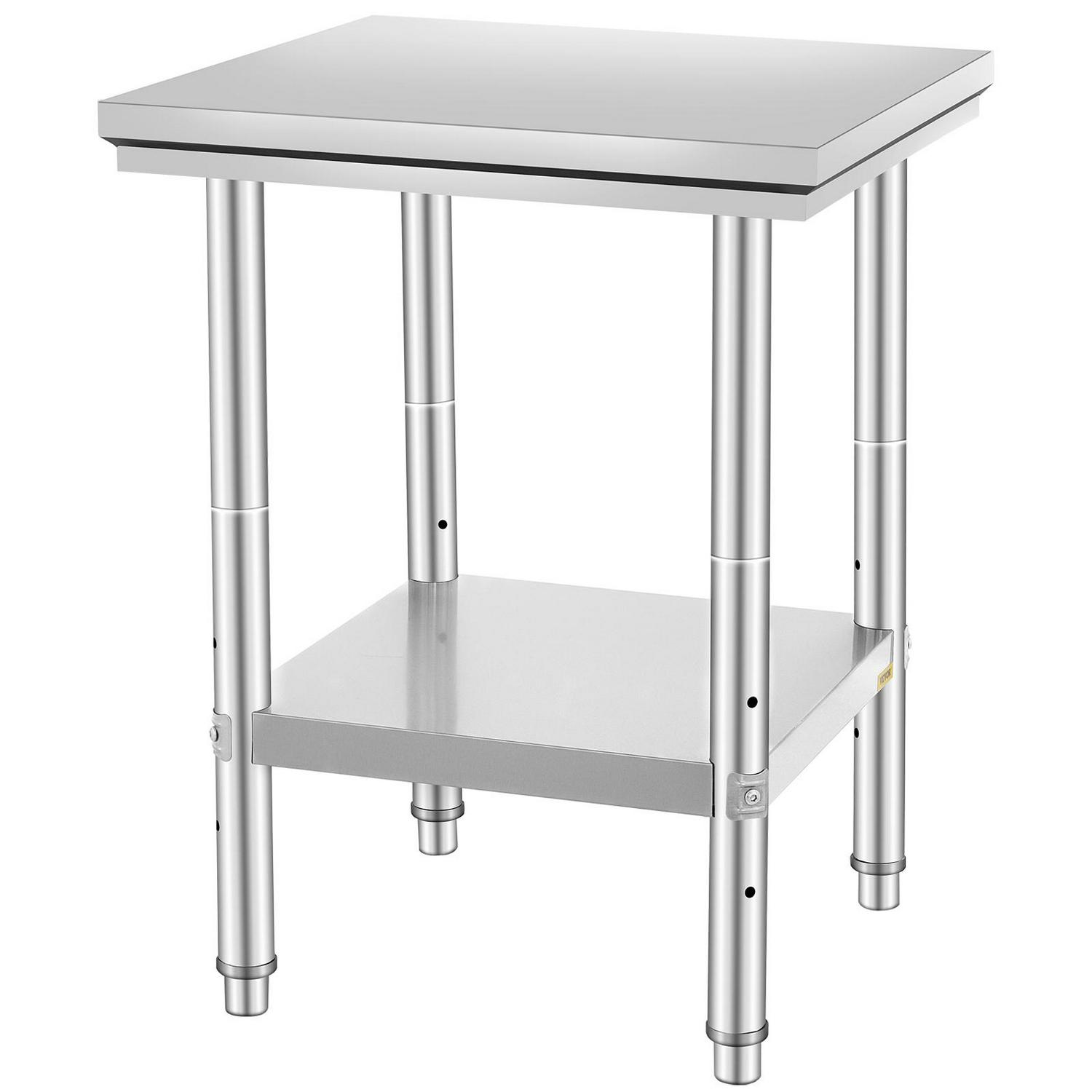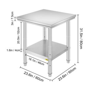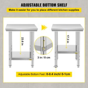 VEVORbrand Stainless Steel Work Table 24 x 24 x 32 inch Commercial Kitchen Prep and Work Table Heavy Duty Prep Worktable Metal Work Table with Adjustable Feet for Restaurant, Home and Hotel