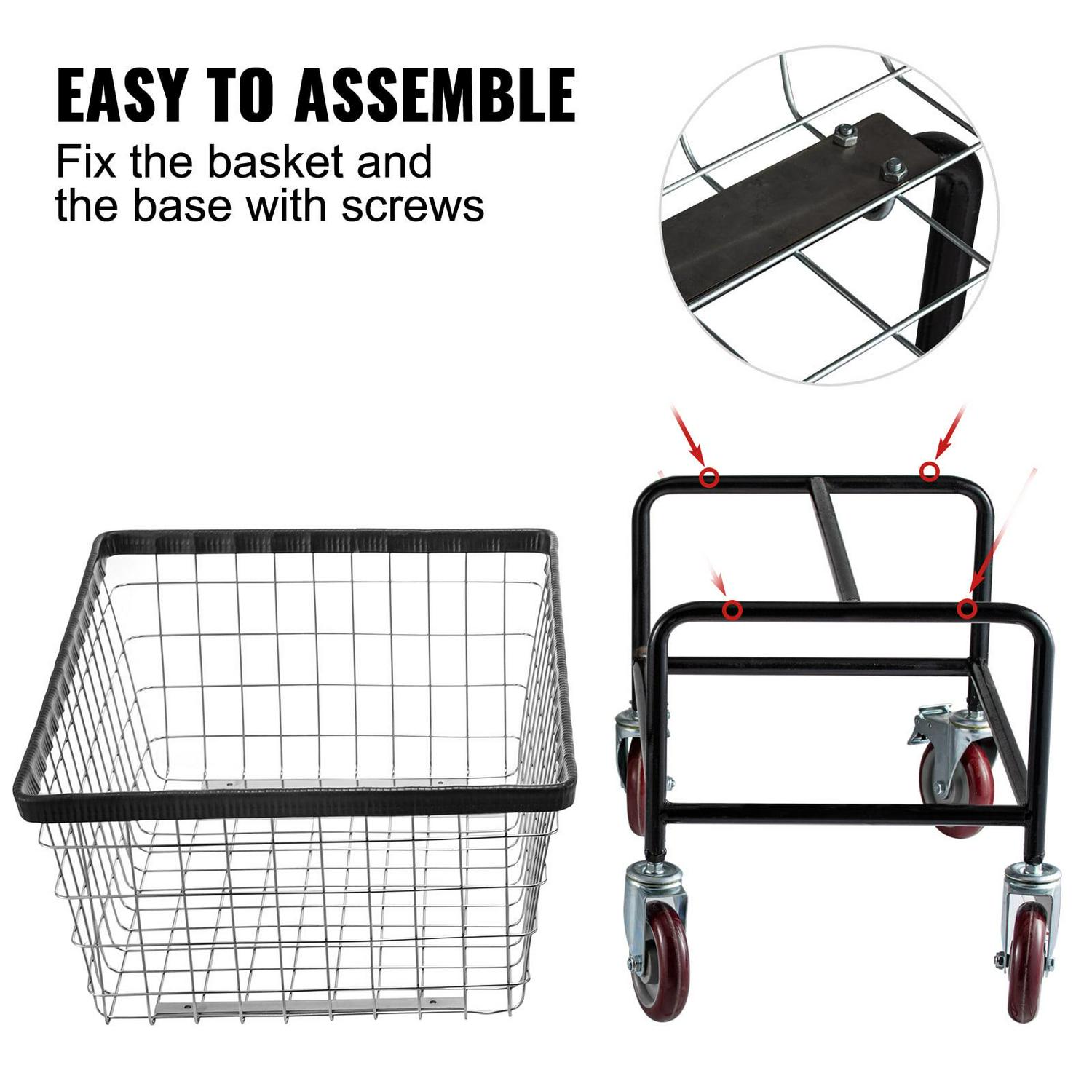 VEVORbrand Steel Rolling Laundry Cart 2.5 Bushel, Wire Laundry Basket with Wheels, Steel Frame with Galvanized Finish, 5 Casters, Wire Cart for Laundry