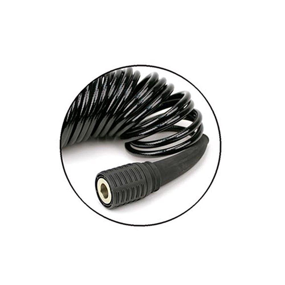 – 5-in-1 air hose with inline 120 PSI gauge