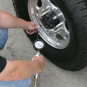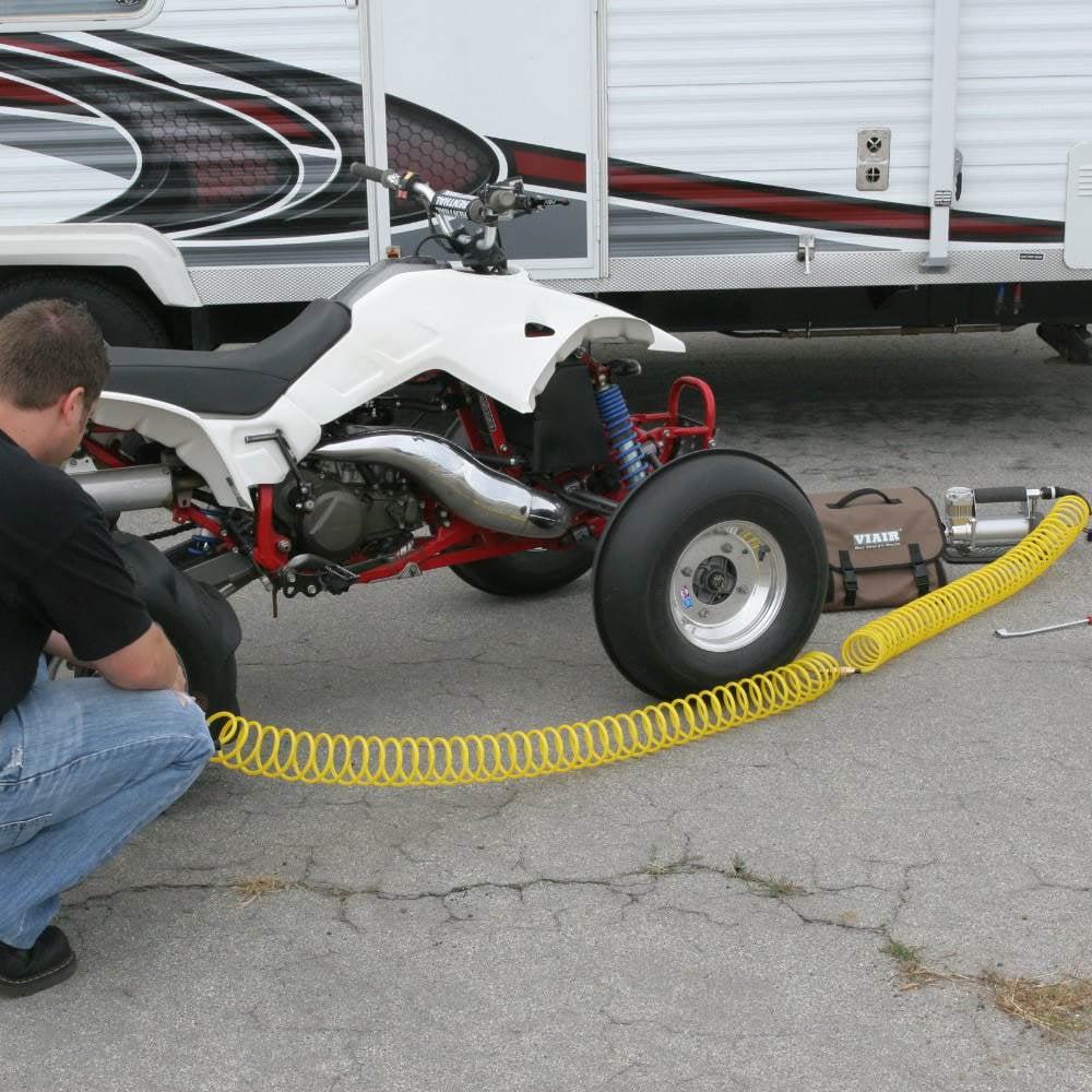 - Monitor tire pressure with the 160-PSI inline gauge without running back and forth