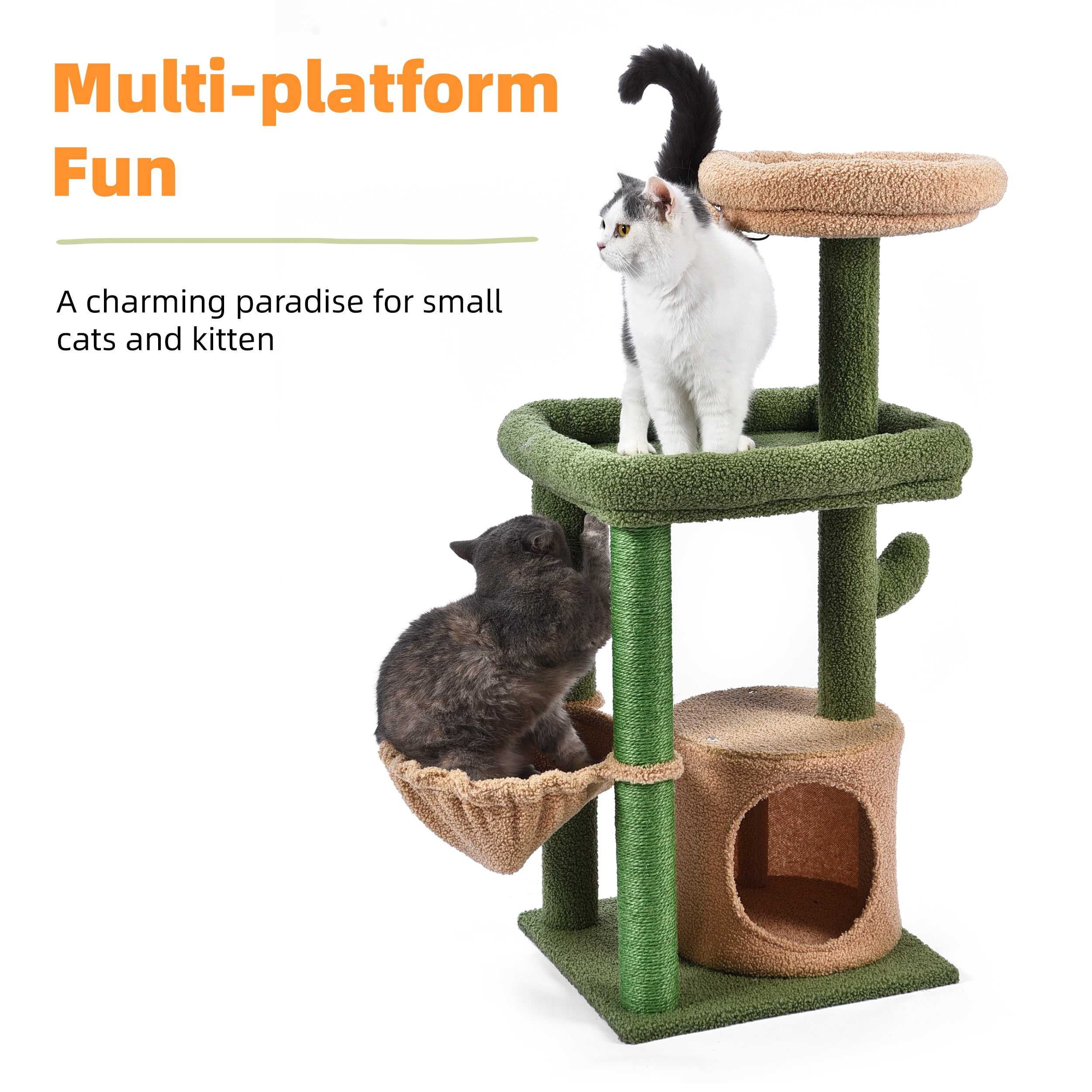 VIBRANT LIFE Help your cats live in Vibrant Life. Our products are specially crafted with one goal: seeing your pet at its very best. Vibrant Life 40inch Cactus Cat Tree combines the functions of climbing, playing, and resting for indoor cats. This green cactus feline furniture stimulates cats’ curiosity and desire to explore. Sisal-wrapped post encourages natural scratching instincts, helps keep nails healthy, and protect your furniture from claws damage! Covered with soft and durable plush material, it offers your furry babies a skin-friendly experience. The central platform provides cats with a cosy perch to rest and nap. Take one for your cats as a gift!