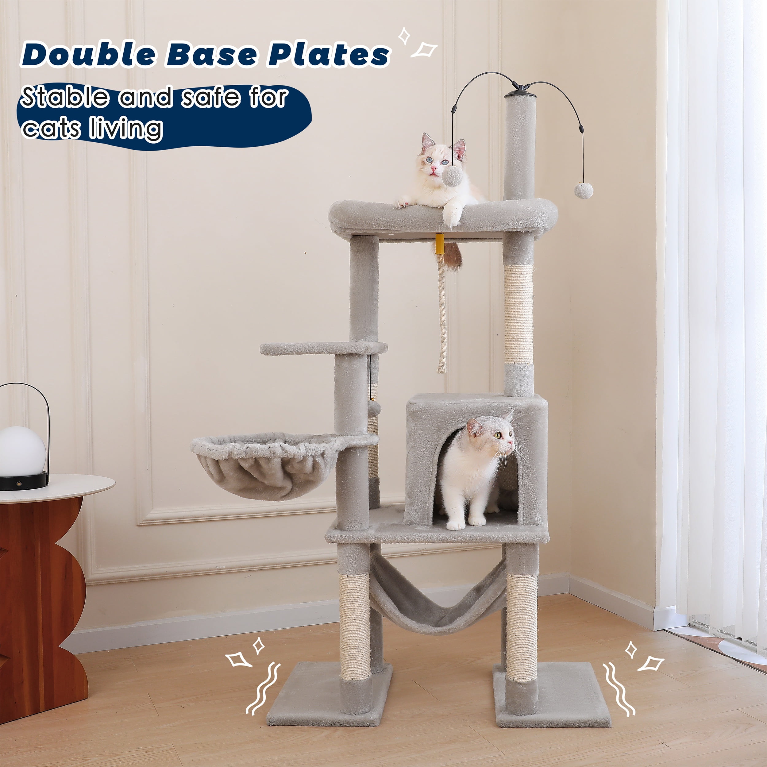 Vibrant Life 58.5inch Multi Level Cat Tree Tower with Interactive Dangling Ball and Double Base,Light Gray