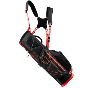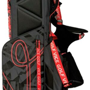 The New VICE Golf SMART Red Carry Stand bag keeps its contents dry in all weathers. It contains 4-fold compartment divisions right through to the base, which guarantees tidy and convenient storage for your clubs. The extra-lightweight build of this bag and the padded shoulder straps provide maximum comfort. Includes a built in stand system, adjustable carrying system, anti slip hip pad, inside water bottle mesh pocket, and a 5 pocket design for excellent storage capacities.