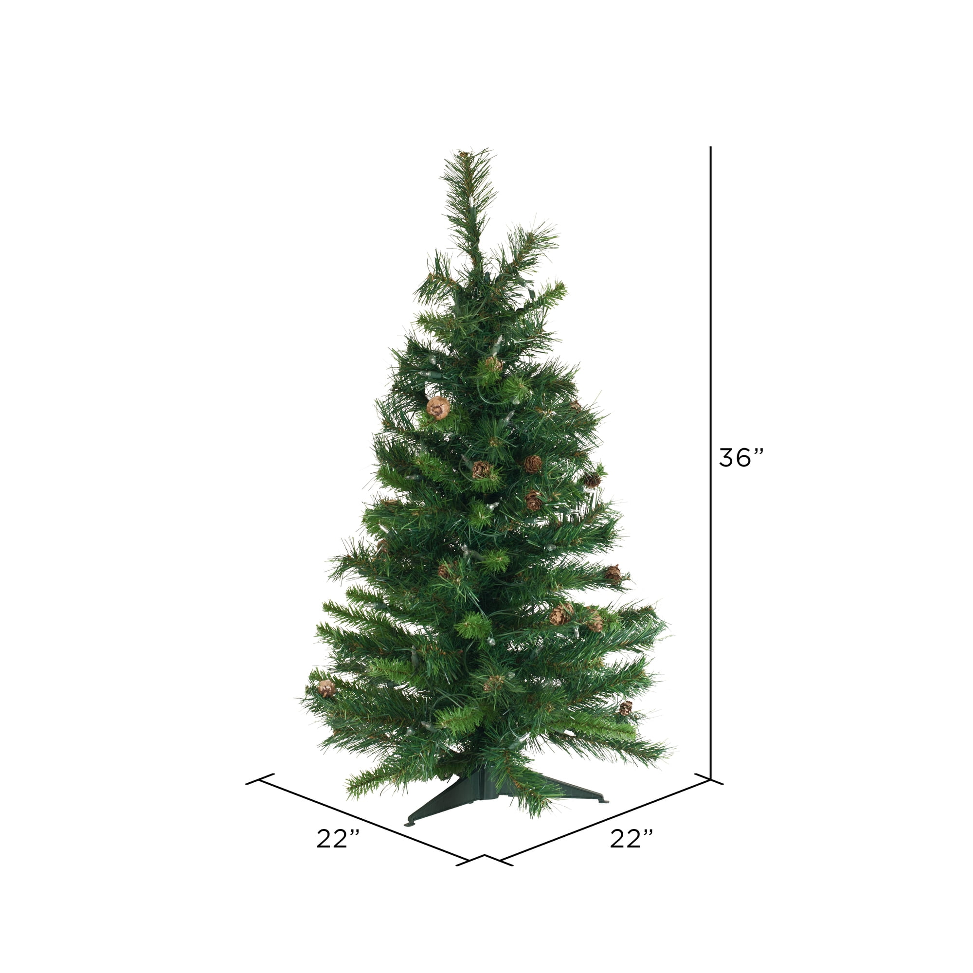 Vickerman 36″ Cheyenne Artificial Christmas Tree tree featuring 115 PVC tips, and 100 clear Dura-Lit® lights. This Cheyenne Pine tree comes prelit with Dura-lit Lights, it has traditional PVC tips, realistic pine cone accents, and a plastic tree stand is included.