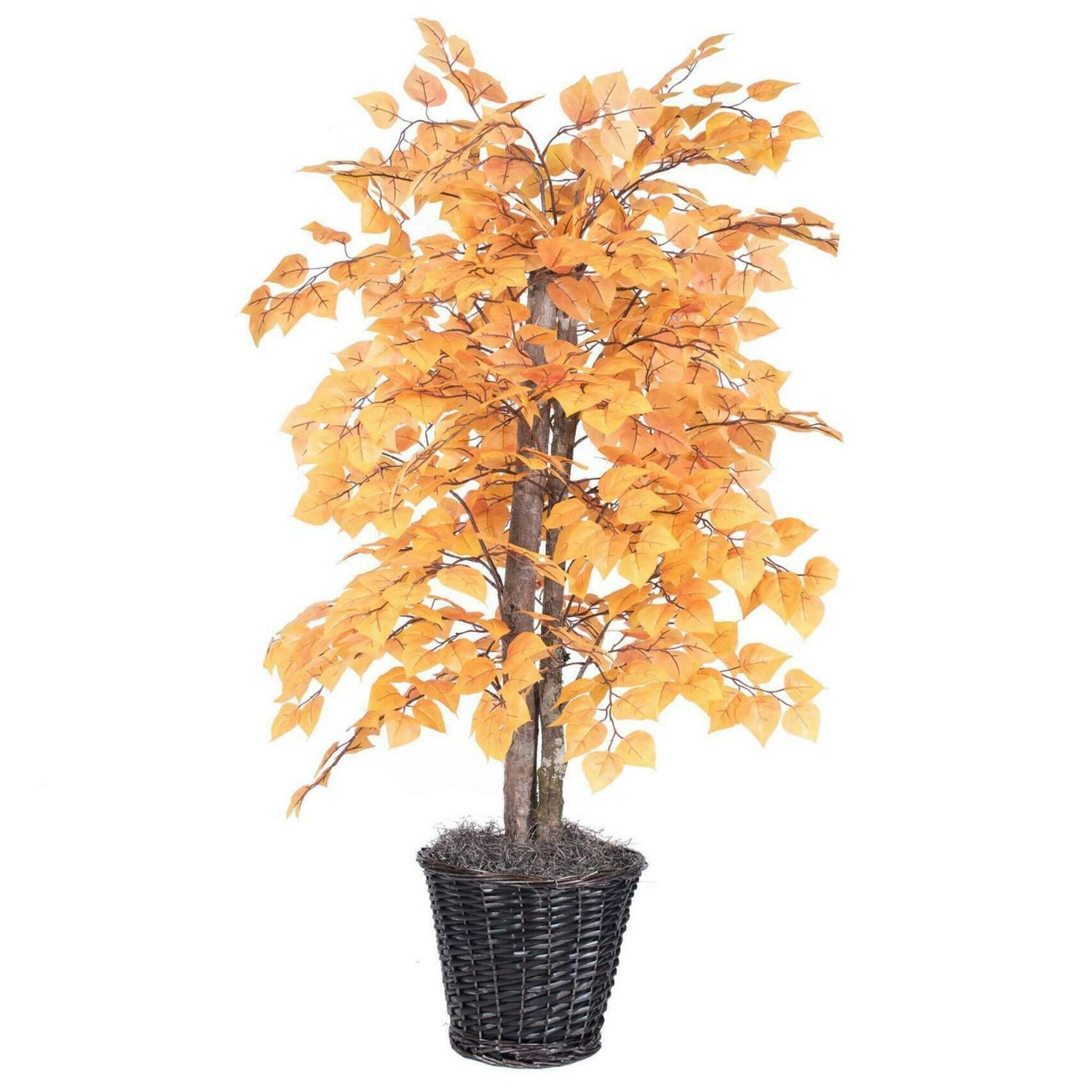 Vickerman 4′ Artificial Golden Aspen Bush, Rattan Basket.