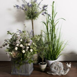 Vickerman 44″ Artificial Lavender in Cement Pot. Get the aesthetic perks of having a Lavender Plant without the hassle of keeping it fresh. This Beautiful Lavender Plant comes Fixed in a Rustic Cement Pot.