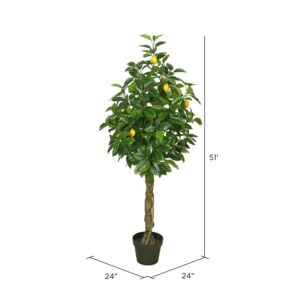Vickerman 51″ Real Touch Artificial Lemon Tree. The Vickerman 51-inch Tall Potted Faux Lemon Tree is made to look just like real lemon trees. With its realistic leaves and fruit, this large faux tree is sure to bring a touch of nature into your home. Perfect for indoor use, this maintenance-free faux lemon tree is easy to keep looking fresh with just a quick wipe of a dry cloth. Whether you’re looking for a tall faux indoor plant or an artificial floor plant, this faux indoor tree is sure to add a touch of greenery to your home or office decor.