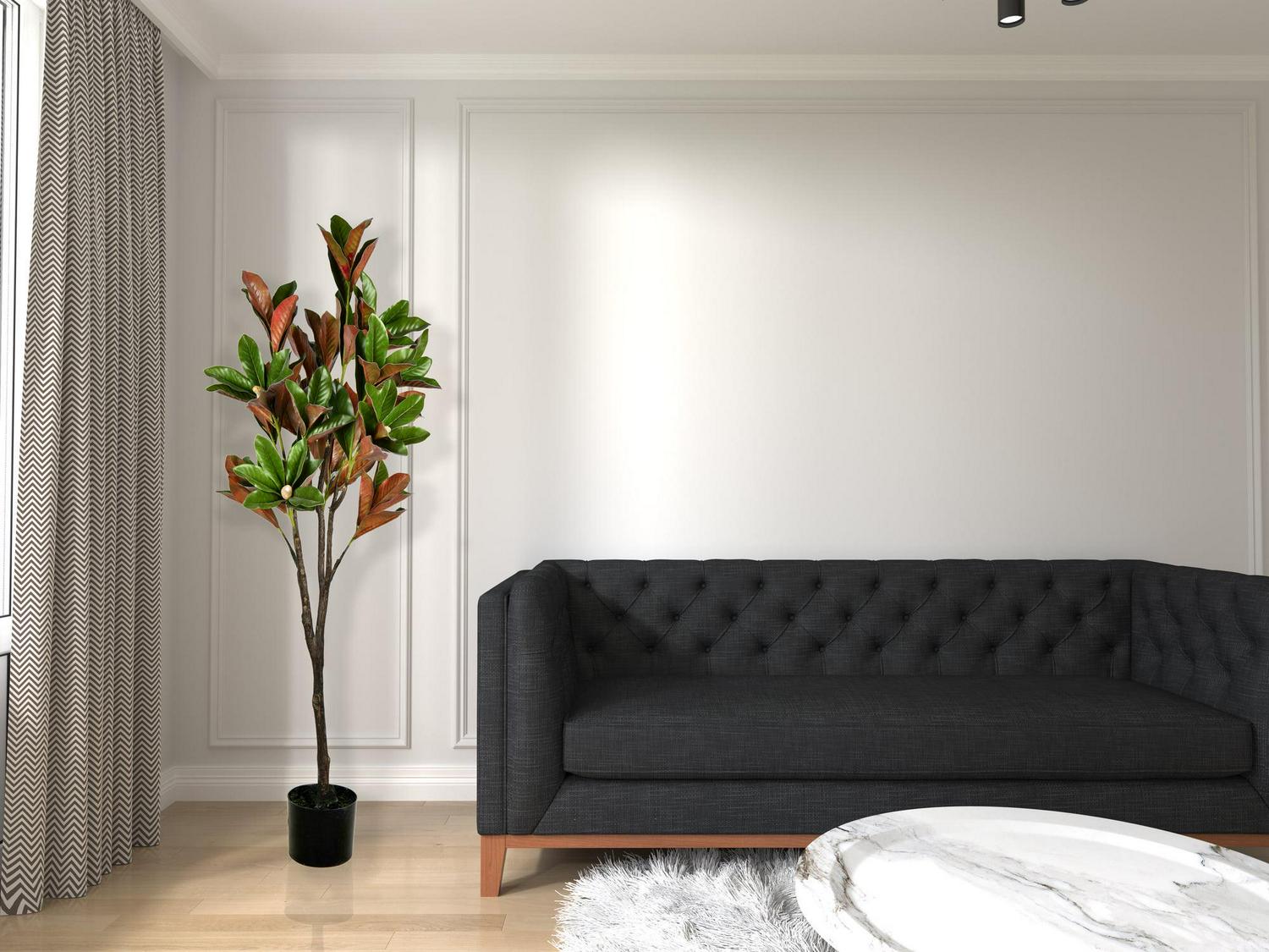 - Lush foliage that fits all decor. Fake magnolia trees will instantly add greenery to any room