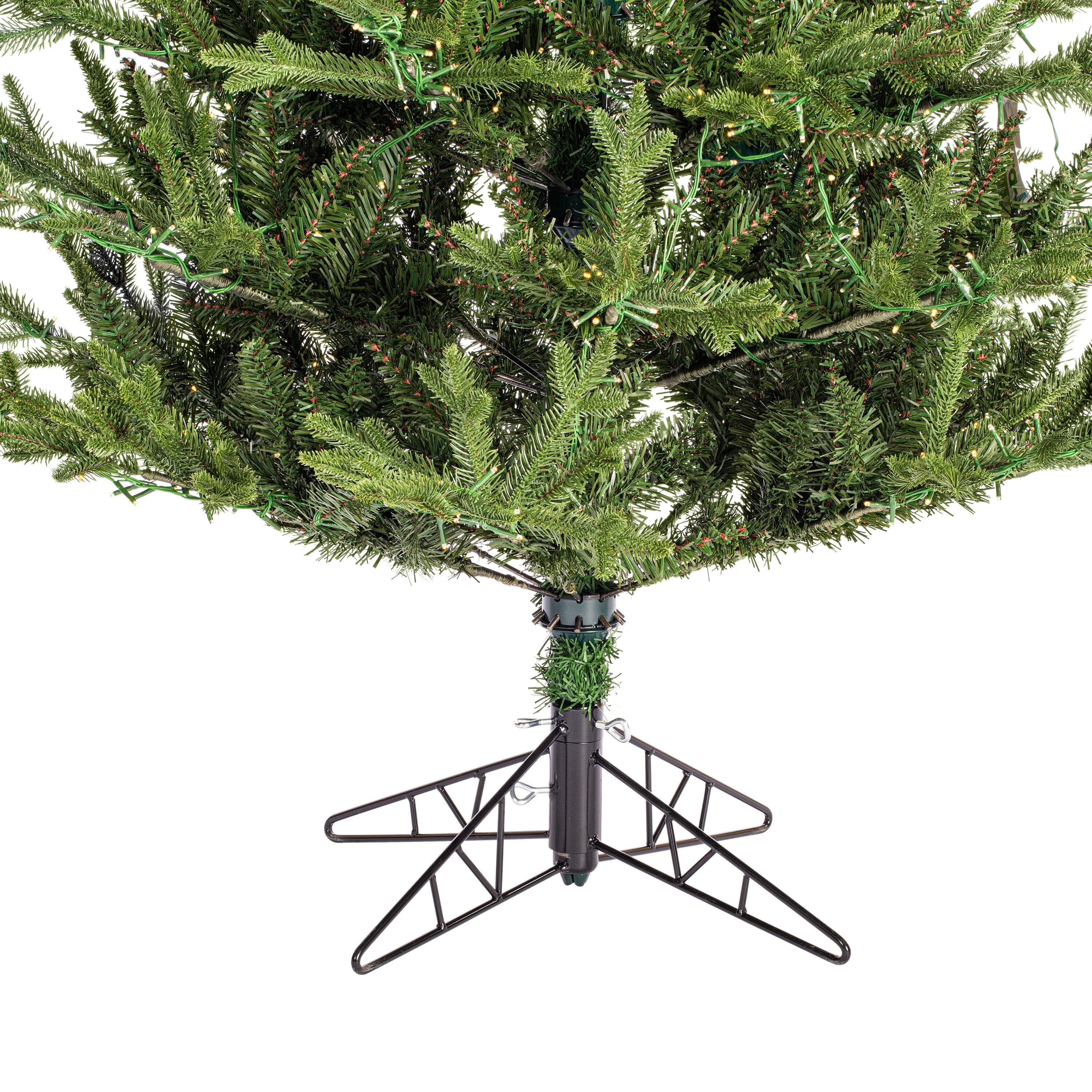 Vickerman 7.5′ x 48″ Kamas Fraser Fir Artificial Christmas Tree: Beautiful and realistic artificial Christmas tree, perfect for your holiday decorations. 1200 Warm White Low Voltage 3MM LED Lights: this artificial Kamas Fraser fir Christmas tree comes Pre-lit with 1200 warm white low voltage LED lights for a stunning display. PE/PVC Tips: This artificial 7.5-foot-tall fir tree features 2180 PVC and PE tips for a full and lush appearance, creating a cozy and inviting atmosphere. Easy setup and control: Assemble your prelit artificial Kamas Faser Fir Christmas tree in no time and conveniently control the lights with an on/off step switch. Sturdy stand and reliable quality: Your premium artificial Christmas tree with LED lights comes with a metal tree stand and is made of high-quality materials for long-lasting durability.
