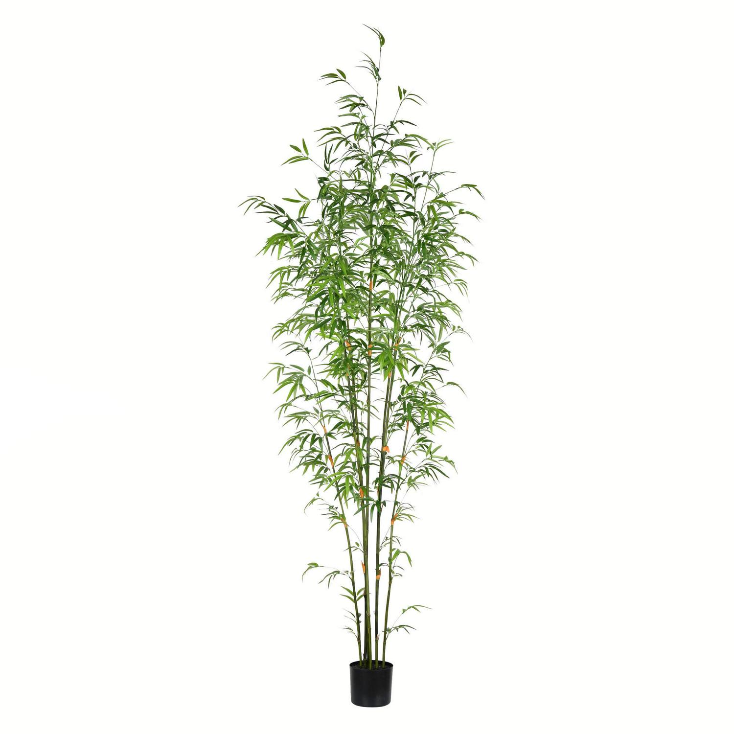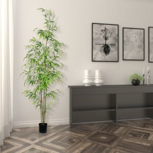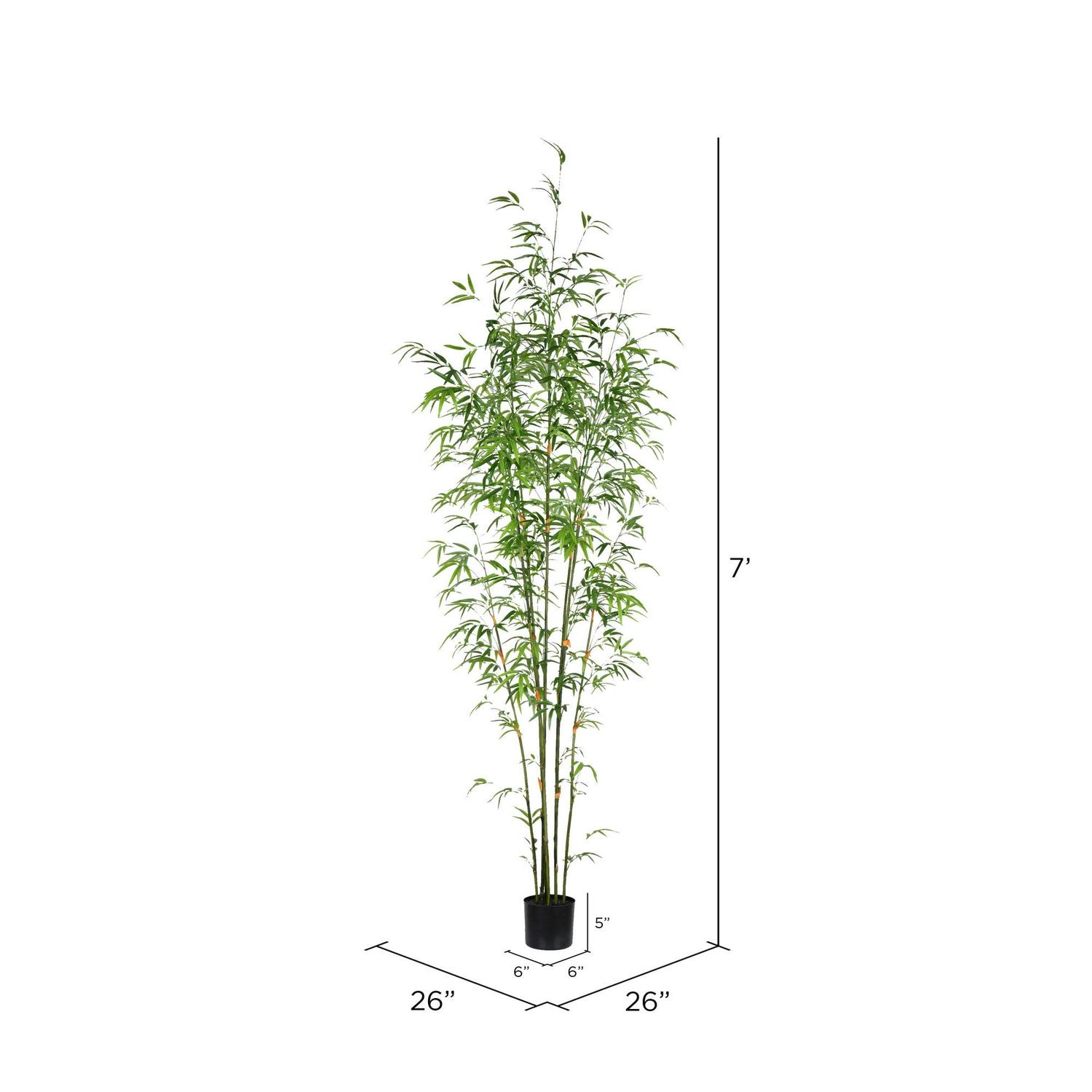Vickerman 7′ Artificial Potted Mini Bamboo Tree. Elevate your indoor space with Vickerman’s 7-foot Tall Potted Faux Mini Bamboo Tree. This realistic artificial tree is the perfect way to bring the beauty of nature into your home or office without the hassle of maintenance. The sturdy black planter pot ensures that your faux bamboo tree will stand tall and look great in any room. Crafted to look just like the real thing, this large artificial tree is sure to impress. It is perfect for adding a touch of greenery to any corner of your home or office, from living rooms and bedrooms to lobbies and conference rooms. With its maintenance-free design, all you need to do is simply wipe down the leaves with a dry cloth to keep your faux bamboo tree looking fresh and vibrant. Looking for a tall indoor tree or an artificial floor plant Look no further than our realistic bamboo tree. With its lifelike appearance and easy care, it’s the perfect choice for anyone looking to add a touch of natural beauty to their decor.