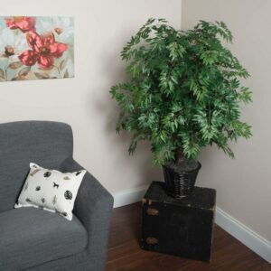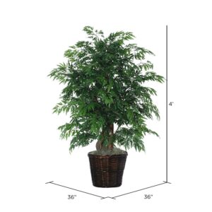 Vickerman 4′ Tall Artificial Ming Aralia Extra Full Bush with a decorative Rattan Basket topped with Excelsior. – Potted in a dark brown rattan basket measuring 9″w x 9.5″t. This unique Ming Aralia bush has lush extra full foliage for a perfect decor accent. – This bush is maintenance free and will suit any decor. Bring a welcome and happy feeling to your home decor with this plant without worrying about keeping it fresh. – Consider this bush for your unique all season decor. When your ming aralia bush arrives you may want to take a minute to shape it for your desired look. This bush will look beautiful for years to come without any maintenance required from you. When necessary simply wipe the plant with a dry cloth to remove dust. Vickerman has been an industry leader since 1940. Enjoy this expert designed plant in the room of your choice.