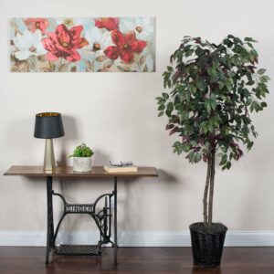 Vickerman Everyday 6′ Artificial Capensia in a Rattan Basket – Real Hardwood Trunks – Lifelike Home Office Decor – Faux Indoor Potted Tree
