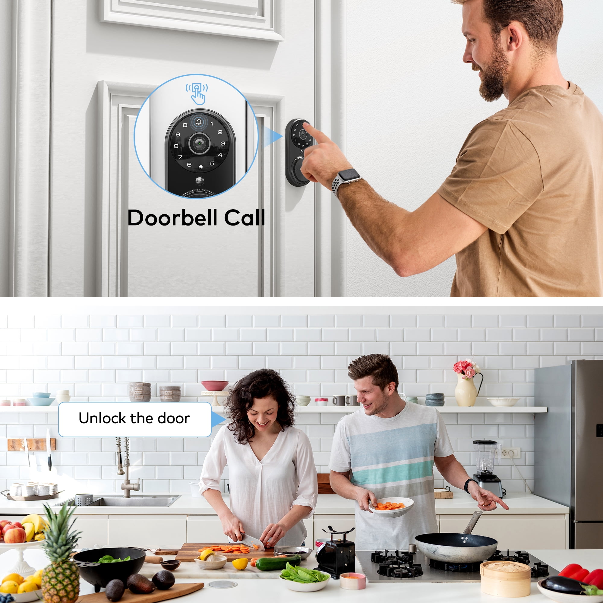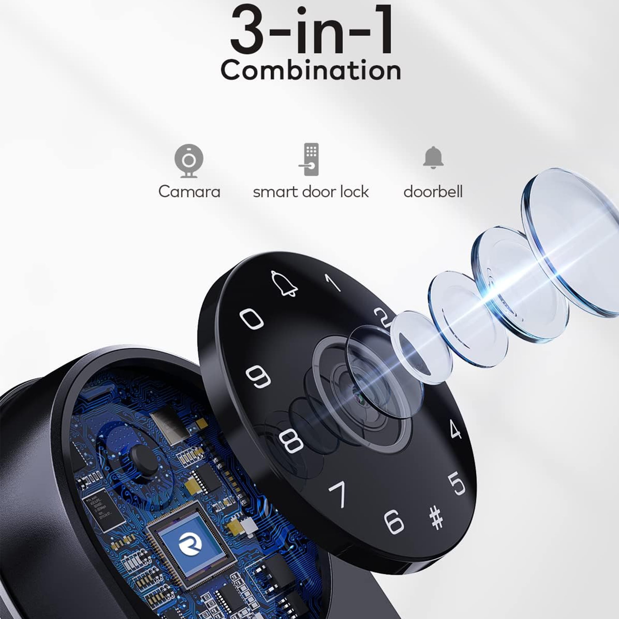 3 in 1 Combination Smart Deadbolt: Advanced 1080P HD Vodeo + Smart Wifi Lock + Doorbell, with enhanced notification features allows you to see, hear, and speak to anyone from anywhere via your smartphone. Never miss a visitor or package ever again. Revolo smart lock provides peace of mind while you are away. Remote Control: Create multiple access codes to be temporary or permanent for your family, friends, visitors, or guests. A great solution for Airbnb rentals, landlords, porch watch, or checking on your pets. Built-in WIFI: The Revolo electronic door lock does not require a monthly fee or Wi-Fi subscription. It allows you to connect directly to your Wifi network without a third party hub, panel or subscription, save yourself the hassle of extra cost. Plug and play device, easy to connect and operate. Compatible with Amazon Alexa and Google Home. (Note: Only support 2.4GHz Connectivity) The Ultra Security: Revolo wifi door lock has a setting to unlock the door by gently knocking when you get home (Compatible with iPhone only). The Wandering Alarm function will trigger the alarm when it detects someone wandering or staying during certain times. This keypad door lock allows you to set automatically lock in 1-1800 seconds or apply 1 touching locking by pressing any key on the keypad, so you never have to worry about leaving your door unlocked. Easy Installation: Easy and quick to install in minutes with no locksmith needed. Also, Revolo keypad deadbolt is compatible with right-handed or left-handed doors and fits most standard door preparations, including necessary hardware components.