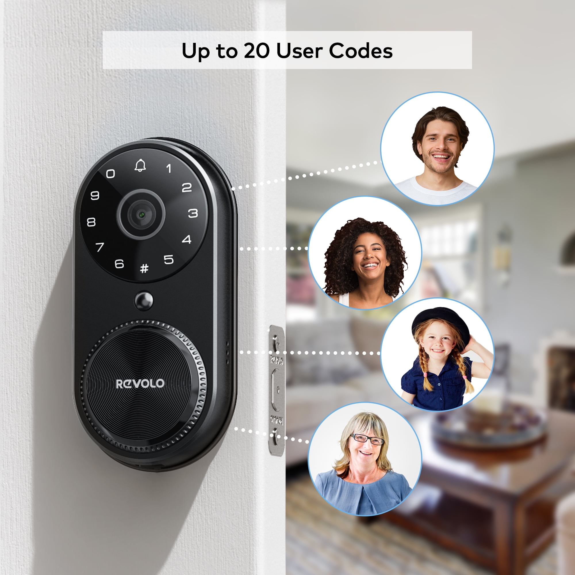 Revolo Wi-Fi Door Lock with Camera and Doorbell, Keyless Entry Door Lock for Front Door, Smart Deadbolt Lock, 1080P HD, Black