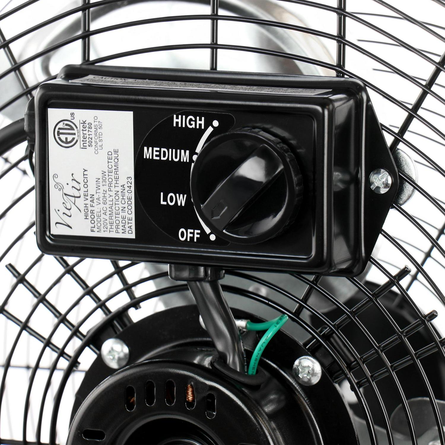Vie Air 20 Inch Twin Pack Industrial Tilting High Velocity 3 Speed Metal Floor Fan
