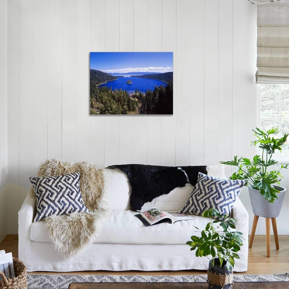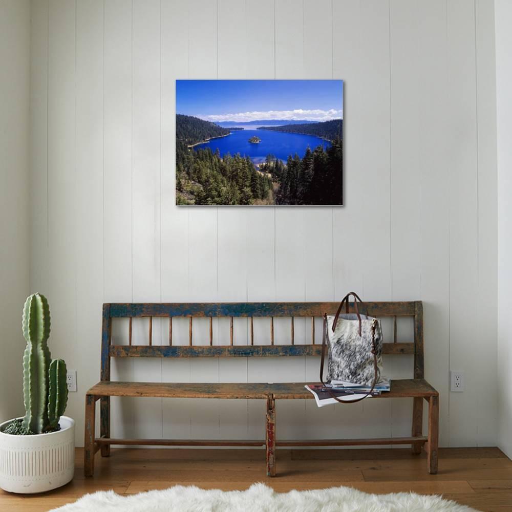 View of Emerald Bay in Lake Tahoe, California, USA, Botanical Scenic Stretched Canvas Wall Art by Adam Jones Sold by ArtCom